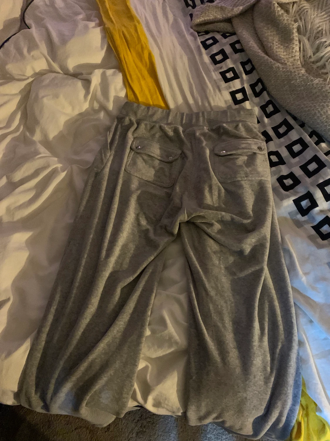 Säljer nu dessa jätte fina gråa juicy couture byxorna då de inte passar mig längre och bara samlar damm. Finns en liten skavank ( sista bilden ) men inget som märks i verkligheten! Om ni undrar över något tveka inte att skriva eller höra av er!☺️