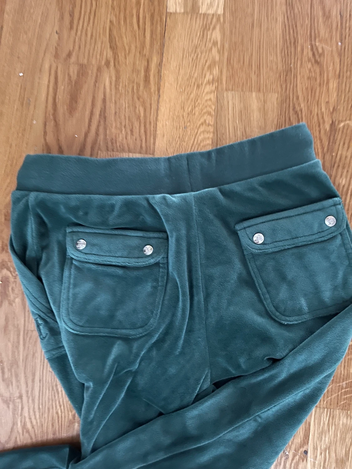 Jag säljer ett par jättefina gröna juicy byxor! Dom är från kidsbrandstore i storlek 11-12 år. Dom är uppsprättad där nere men det är inget man ser ❤️