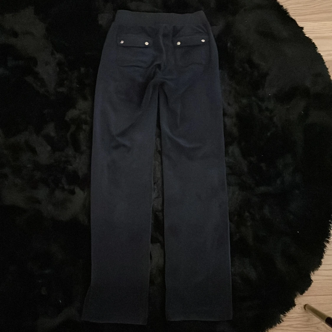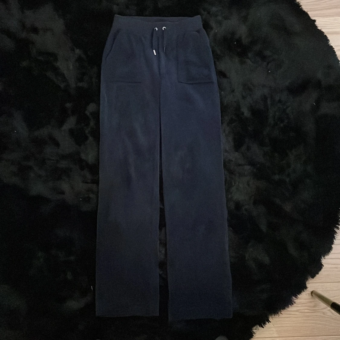Säljer mina juicy couture byxor i mörk blå färg på grund av att dem inte kommer till användning längre. Dem är i jätte bra skick men saknar en metal bit på snöret. Jag är 168 typ och dem sitter bra i längden på mig.