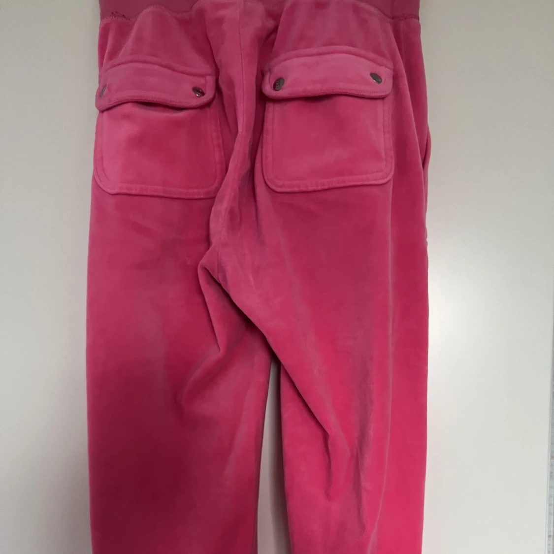 Hej! Säljer nu mina rosa juicy då dem inte kommer till användning. En utav metall grejerna på smörerna har ramlat av men inget man tänker på. Bara att skriva om du vill ha fler bilder så löser jag det 😊kommer slängas om dem inte säljs inom kort