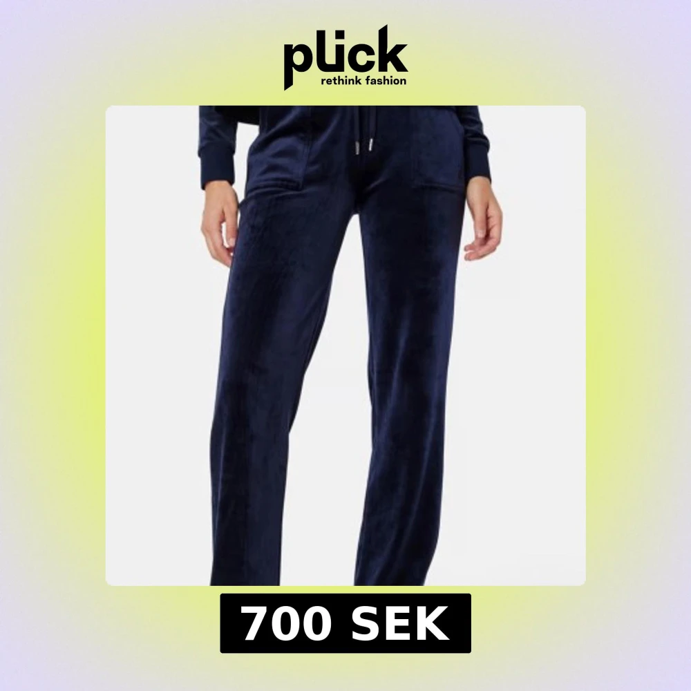 Mysiga mörkblå mjukisbyxor i sammetsmaterial med raka ben och dragsko i midjan. Perfekta för chill dagar och har en snygg, enkel design med fickor framtill.