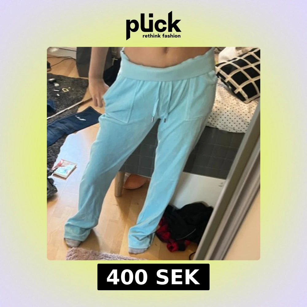 Säljer ett par ljusblå mjukisbyxor från Juicy Couture. Byxorna har en bekväm passform med elastisk midja och snörning. De har praktiska fickor både fram och bak, vilket ger en avslappnad look. Perfekta för en chill dag hemma eller en avslappnad utflykt.