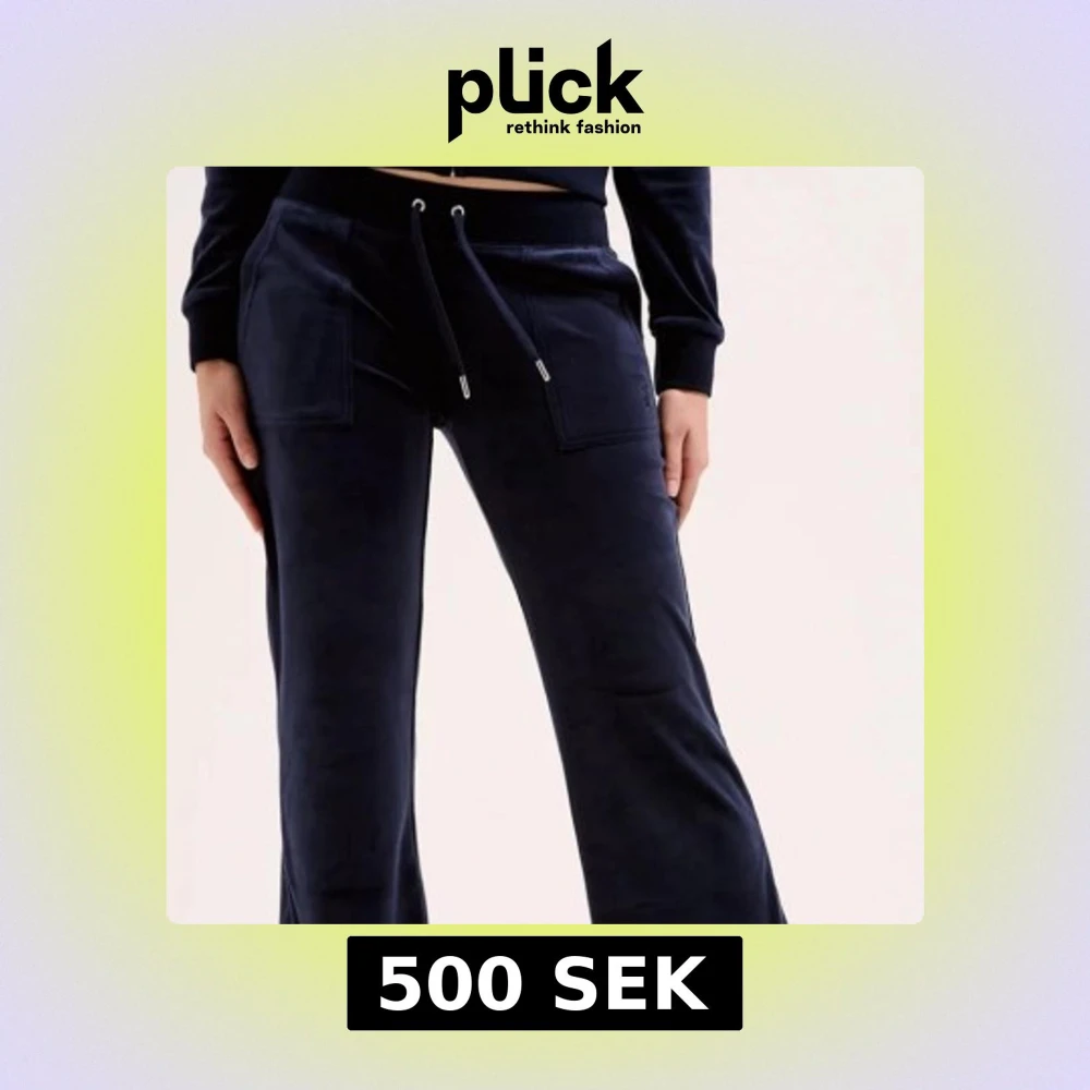 Mysiga mörkblå mjukisbyxor i mjuk velour med breda ben och snörning i midjan från juicy couture. Byxorna har stora fickor fram och bakfickor med knappdetaljer. Perfekta för chill dagar eller när du vill vara extra bekväm.