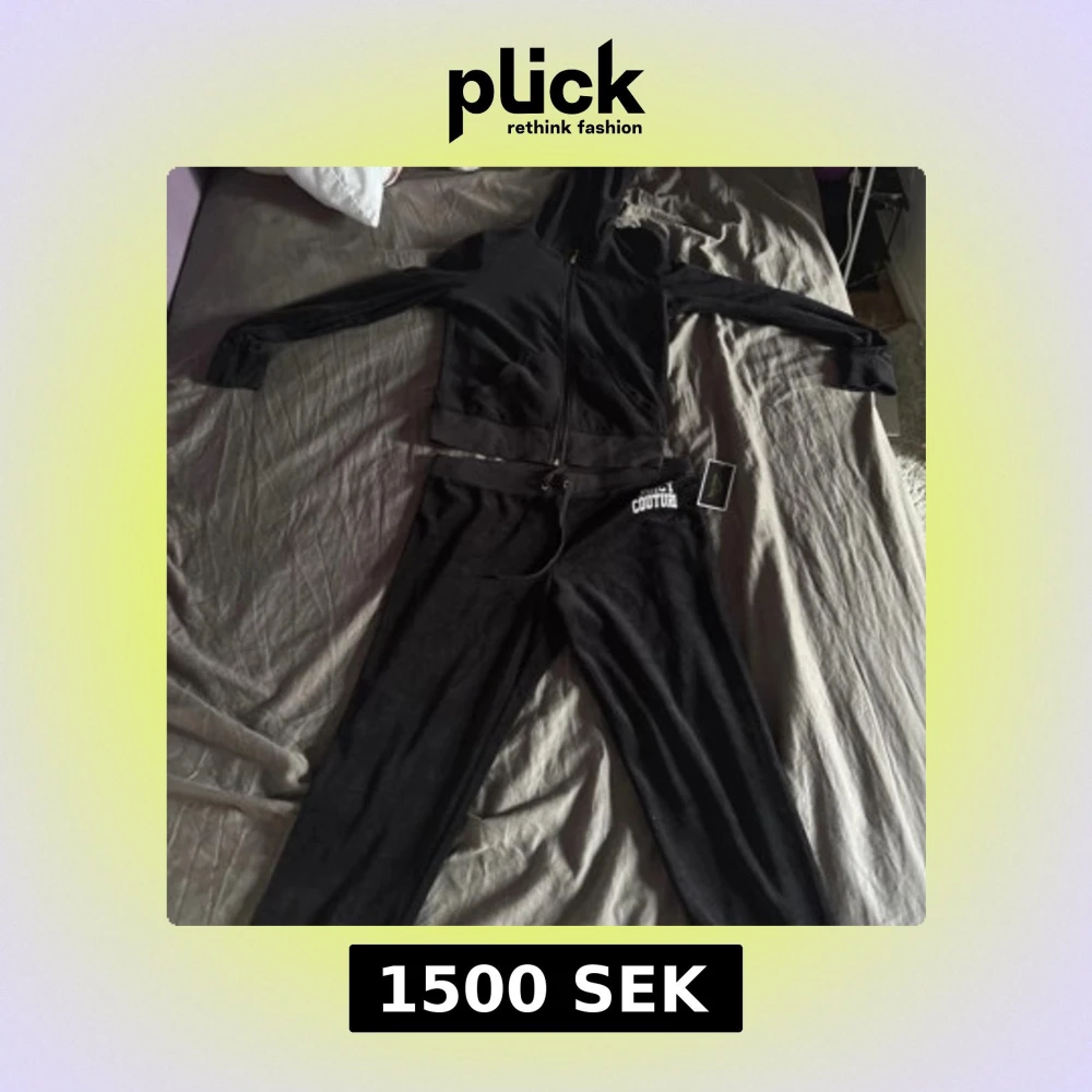 Svarta mjukisbyxor från Juicy Couture i storlek M. Byxorna har snörning i midjan och vit broderad logga på höften. Mjukt material med skön känsla, perfekt för chill dagar. Klassisk Juicy Couture-stil med matchande hoodie finns.Unik stil köpt i USA