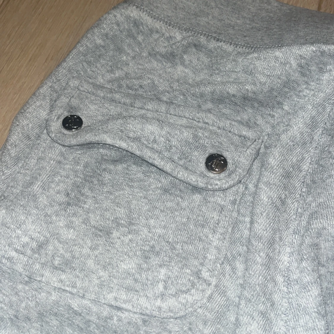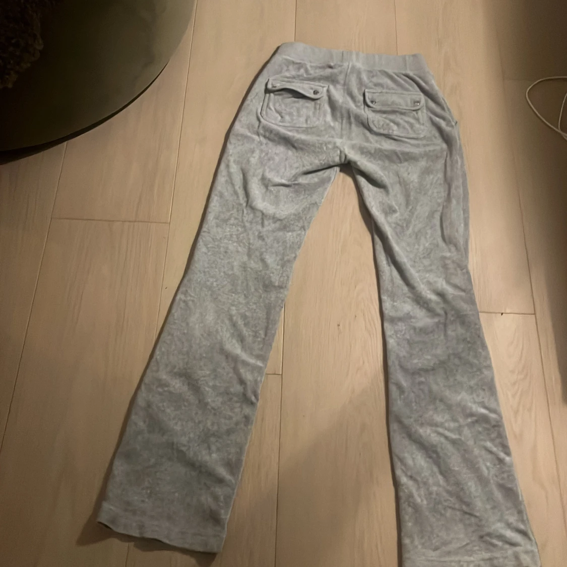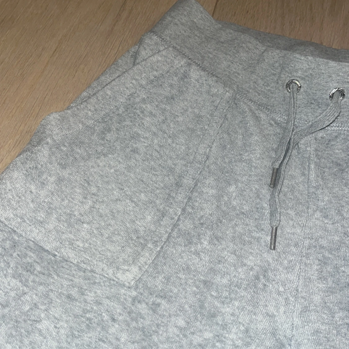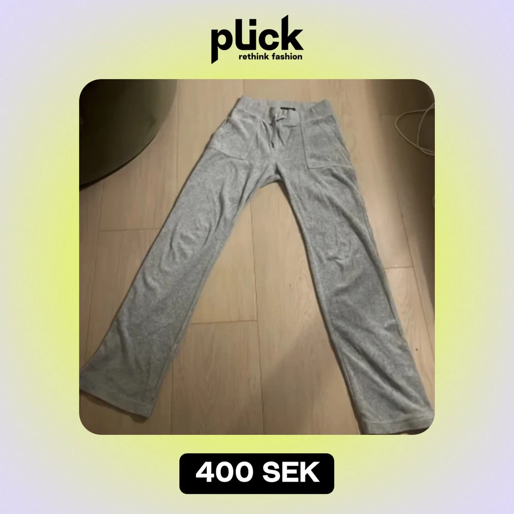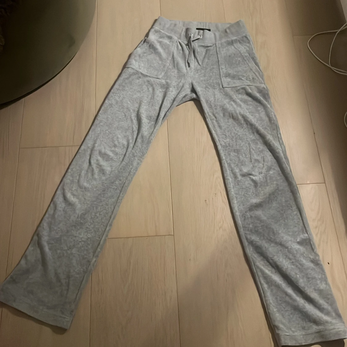 Säljer ett par supermysiga grå mjukisbyxor från Juicy Couture i storlek XS. Byxorna har en bekväm passform med snörning i midjan och stora fickor fram. Perfekta för en chill dag hemma eller en snabb tur till affären. De är i bra skick och redo för en ny ägare!