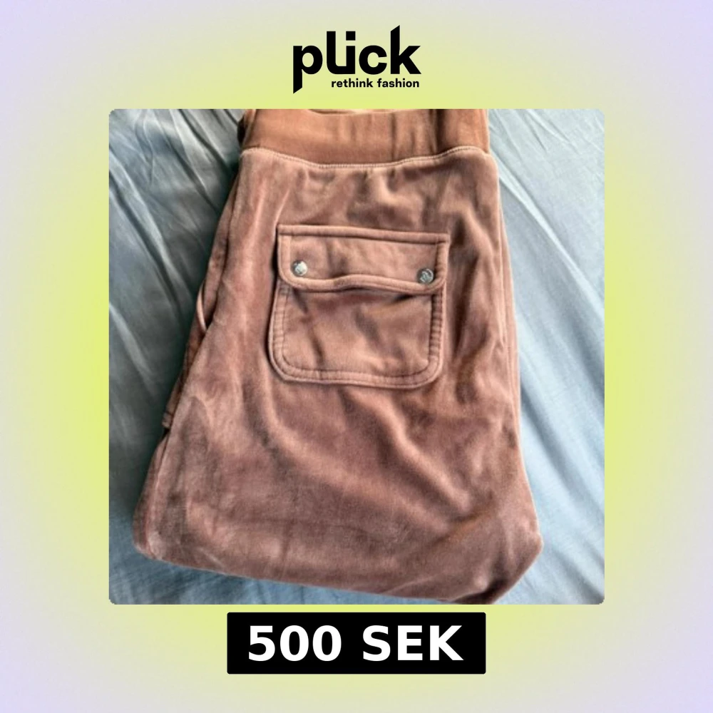 Mysiga bruna mjukisbyxor från Juicy Couture i velour med snörning i midjan och fickor med lock och tryckknappar bak. Byxorna har en relaxed passform och breda ben, perfekt för en chill och trendig look.