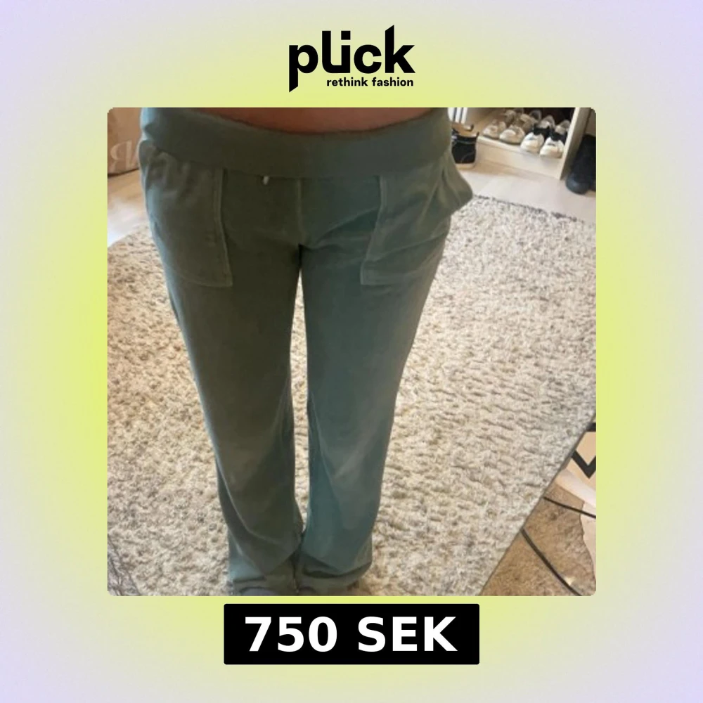 Snygga gröna mjukisbyxor i ett mjukt material med fickor och knappdetaljer. Från juicy självklart äkta och knappt använda storlek s!❤️