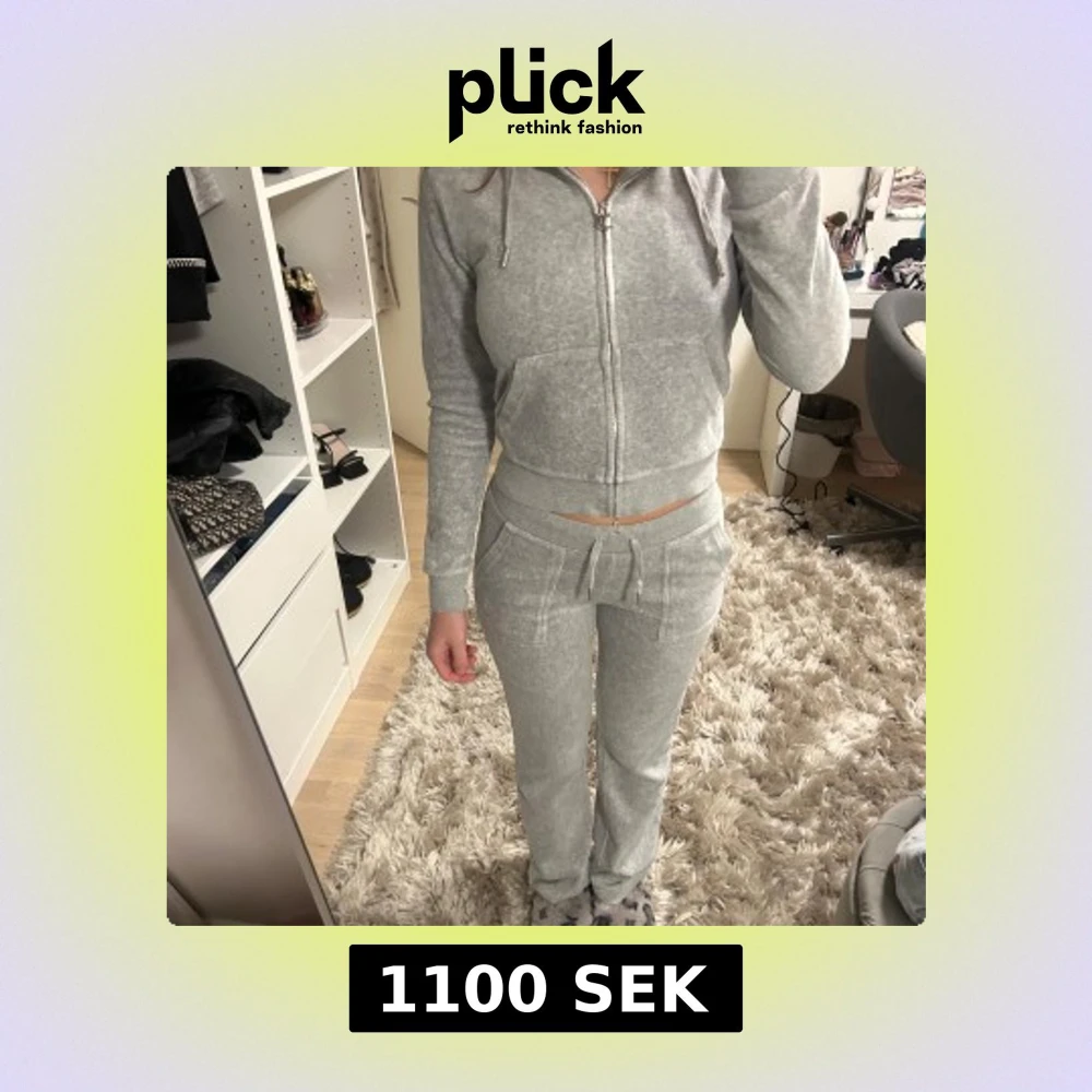 Grått juicy couture sett. Andvänt men i bra skick! Inga hål eller fläckar. Storlek XS i både byxorna och tröjan💗