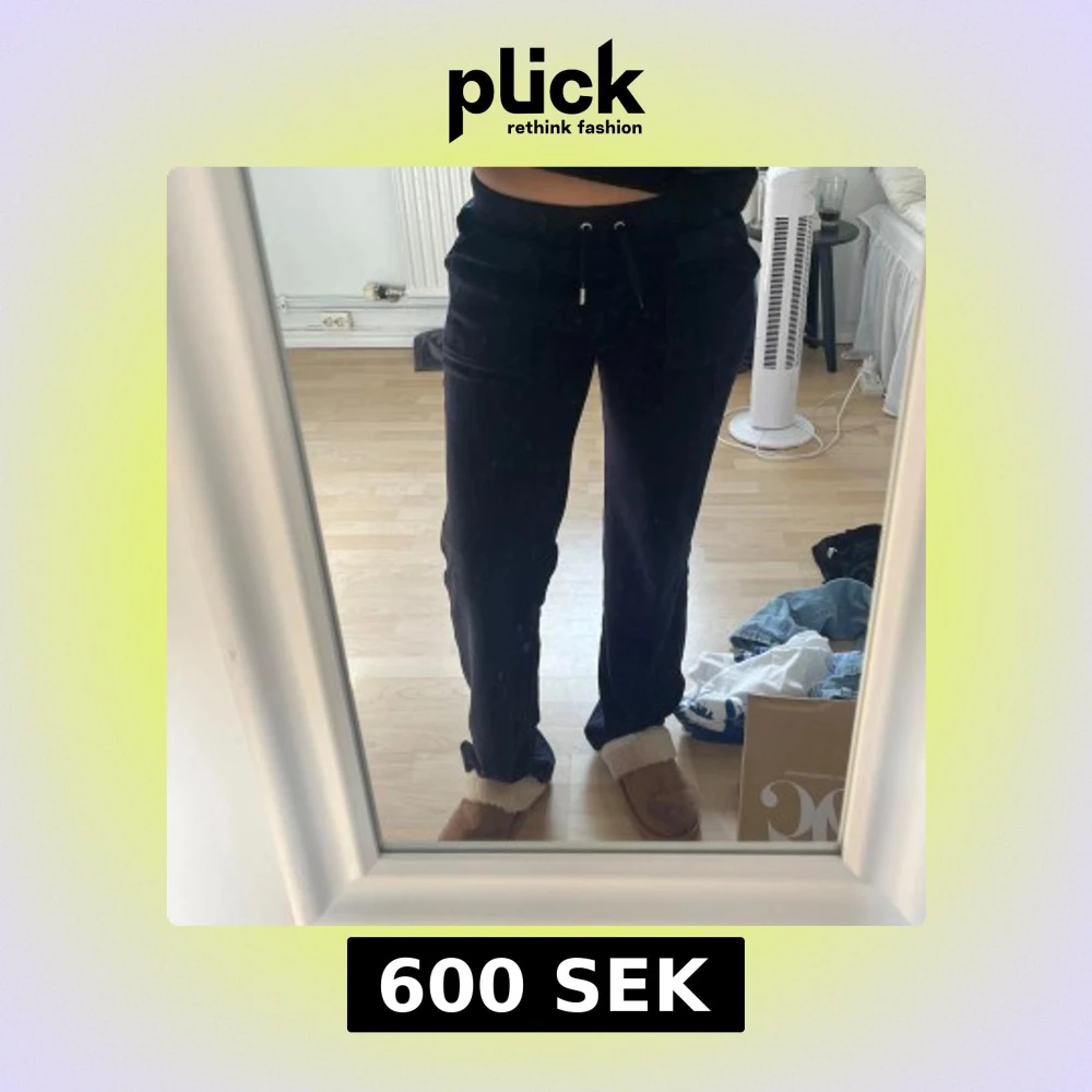 Mörkblåa juicy byxor, använda men i bra skick! Hör av er vid frågor🤗