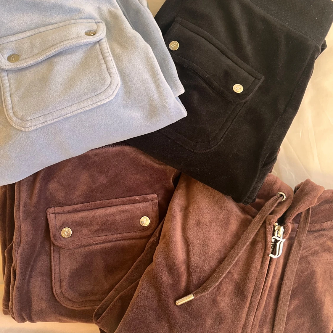 Säljer ett par bruna och svarta juicy couture mjukisbyxor med fickor och dragkedja. Byxorna har en loose passform och är perfekta för en avslappnad stil. Finns även i svart och rött(se min profil, strl xs).