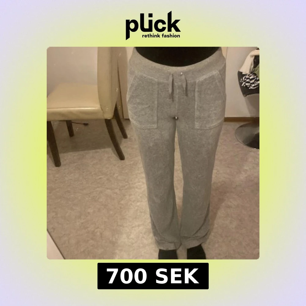 Mysiga grå mjukisbyxor med bred resår i midjan och snörning framtill. Byxorna har stora fickor fram och en ficka bak med knapp. Raka ben och mjukt material som känns skönt mot huden. Perfekta för chill dagar hemma.