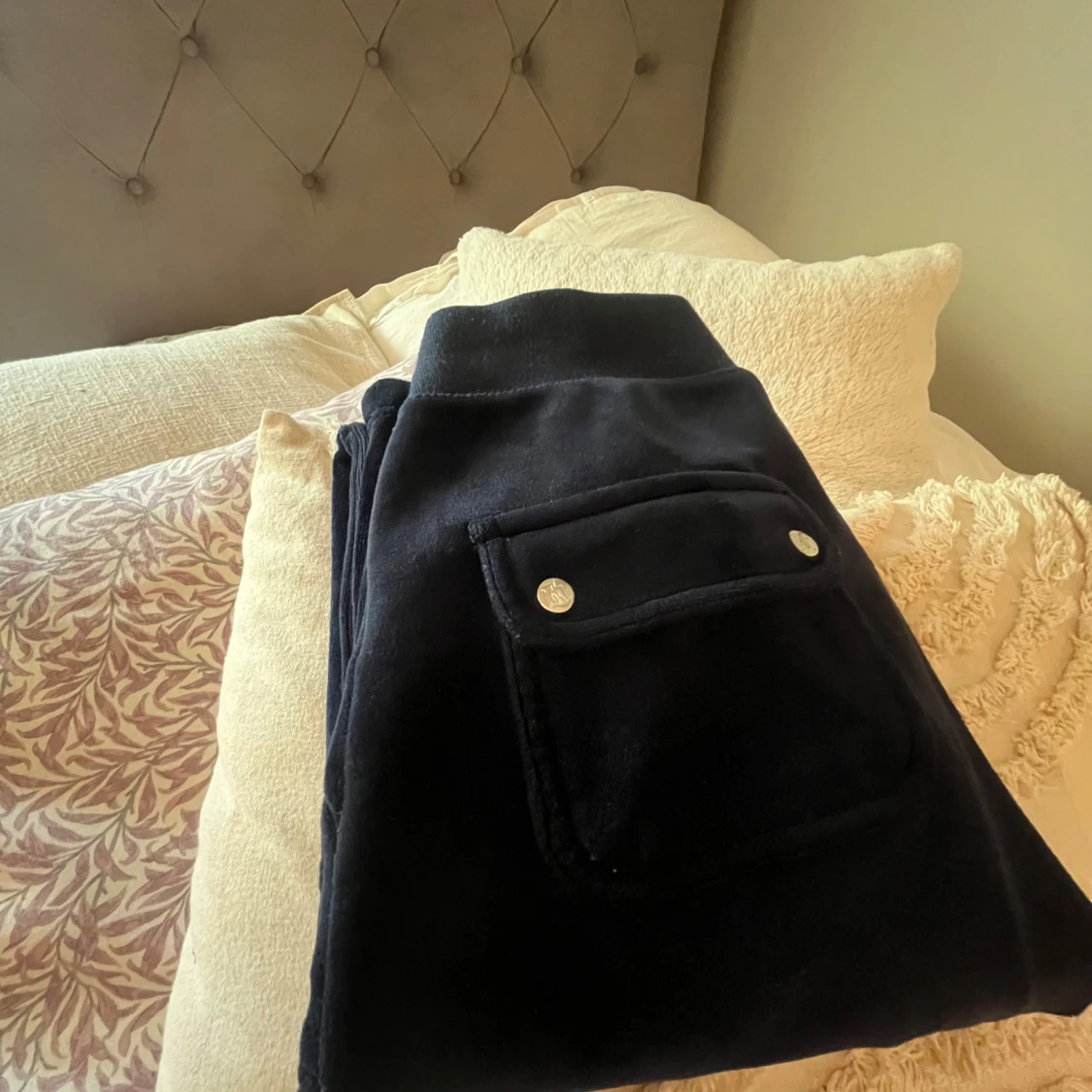 Säljer mina mörkblå juicy couture byxor då de inte kommer till använding längre💘i storlek Xs men passar även mig som bär S. Har inte kommit till användning sedan 2023 när de var väldigt trendiga men även då användes de endast ett få tal gånger. Därav är de i super bra skick, iprincip nyskick🥰 nypris ca 1000 kr