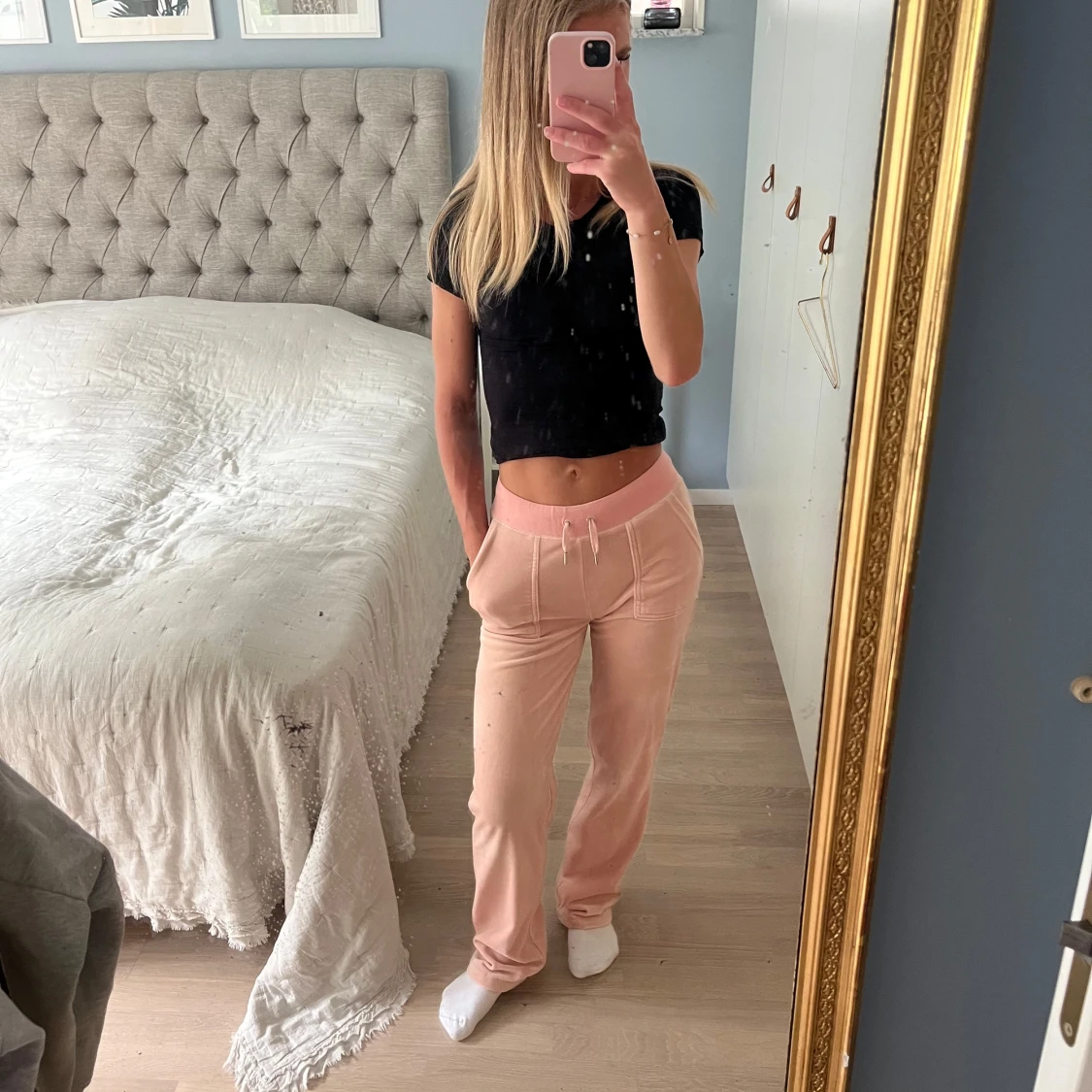 Säljer ett par ljusrosa mjukisbyxor från Juicy Couture💕Använda men i bra skick!✨Skriv för fler bilder eller eventuella frågor💕