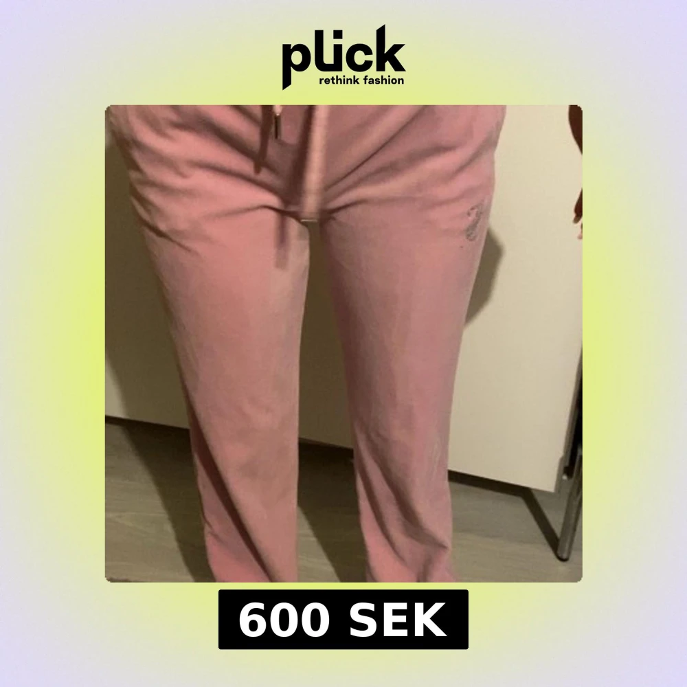 Säljer ett par klassiska rosa mjukisbyxor från Juicy Couture med strassdetaljer och logga på baksidan. Byxorna har dragsko i midjan och raka ben. Perfekta för en avslappnad och trendig look.