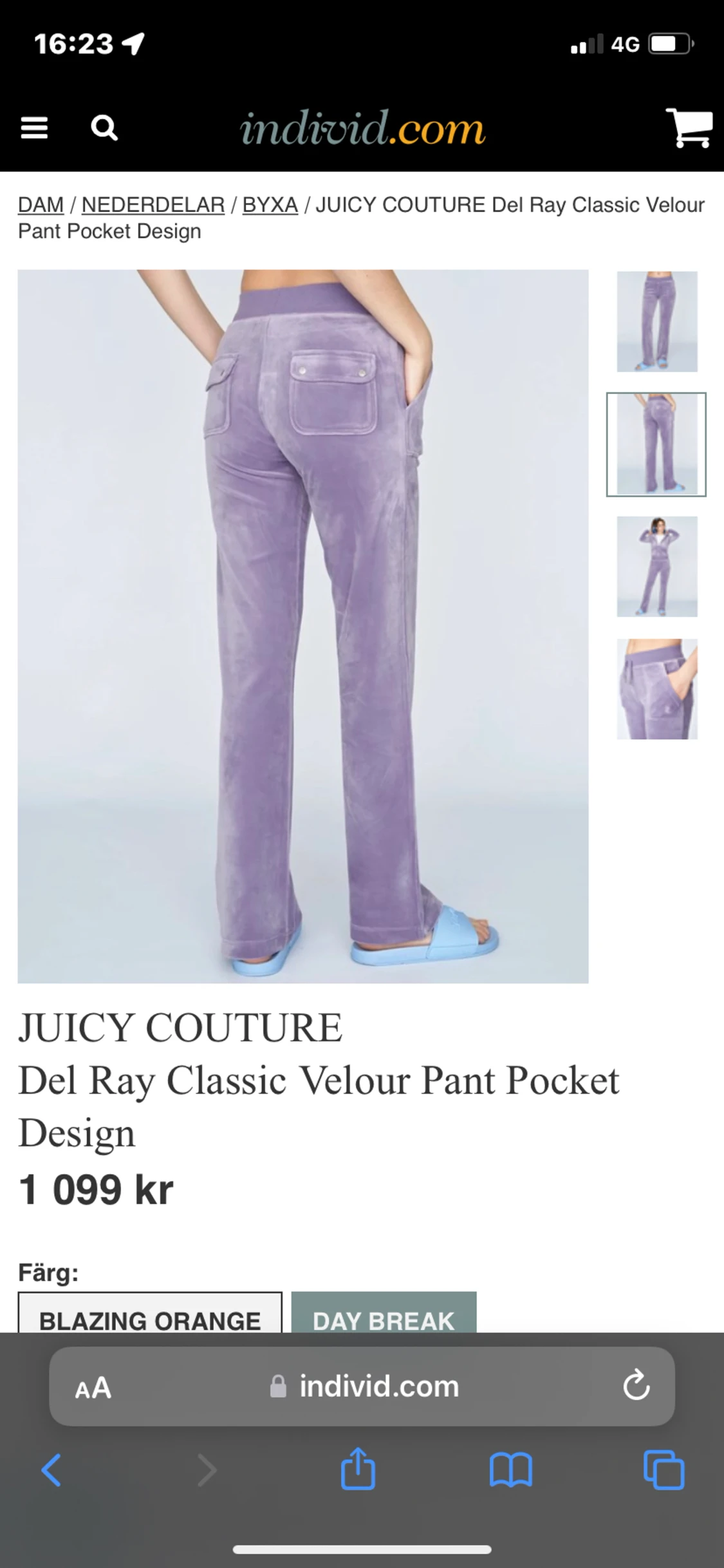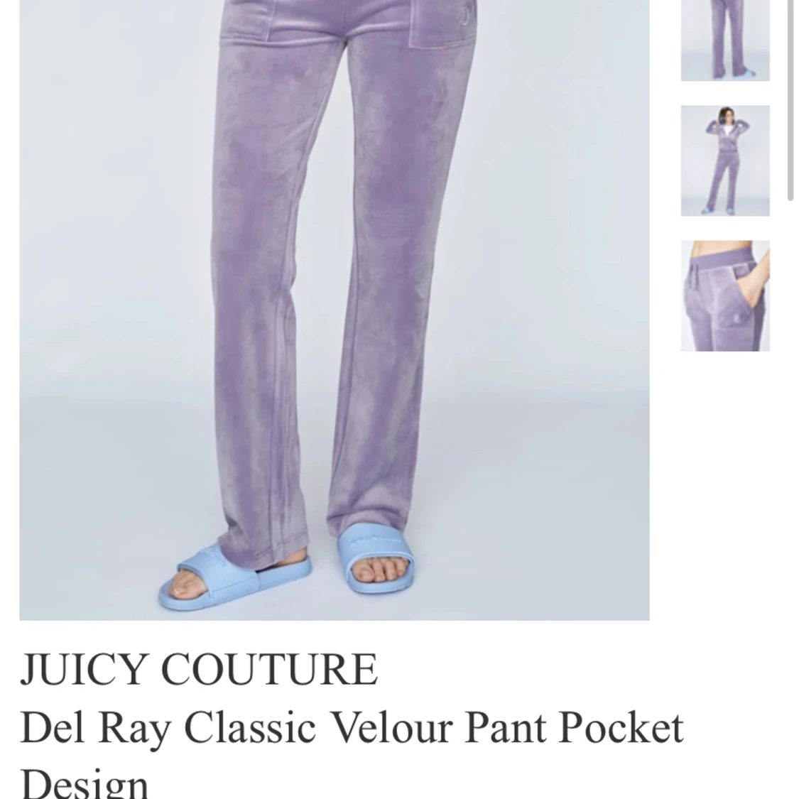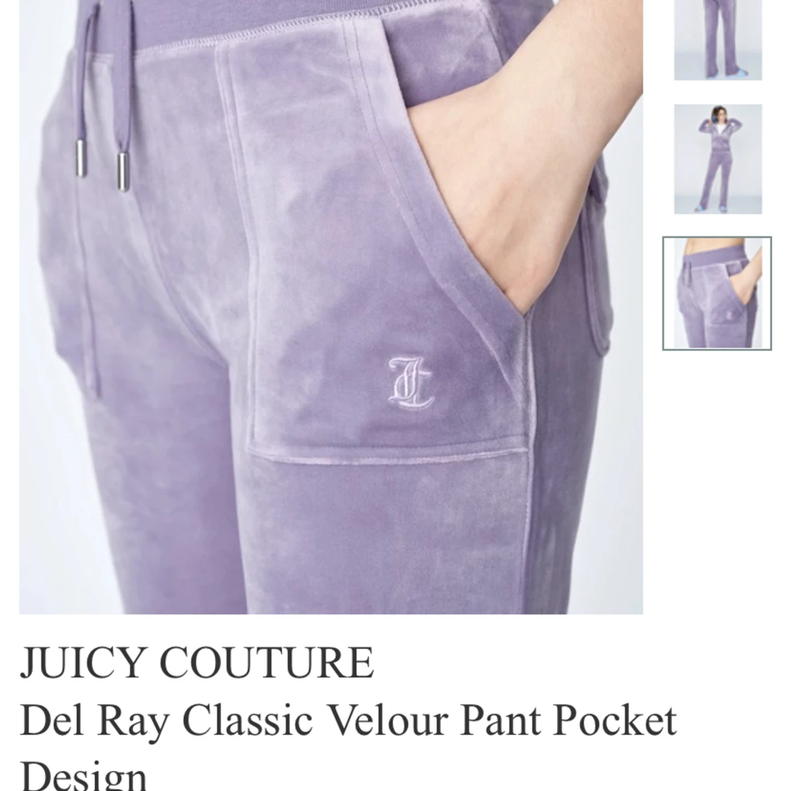 ett par lila juicy byxor som jag säljer för att jag tröttnat på färgen. Dom e ganska andvända men har inga hål. Dom passar mig som är 145 för att jag har sytt upp dom. Men det går att sprätta ner dom