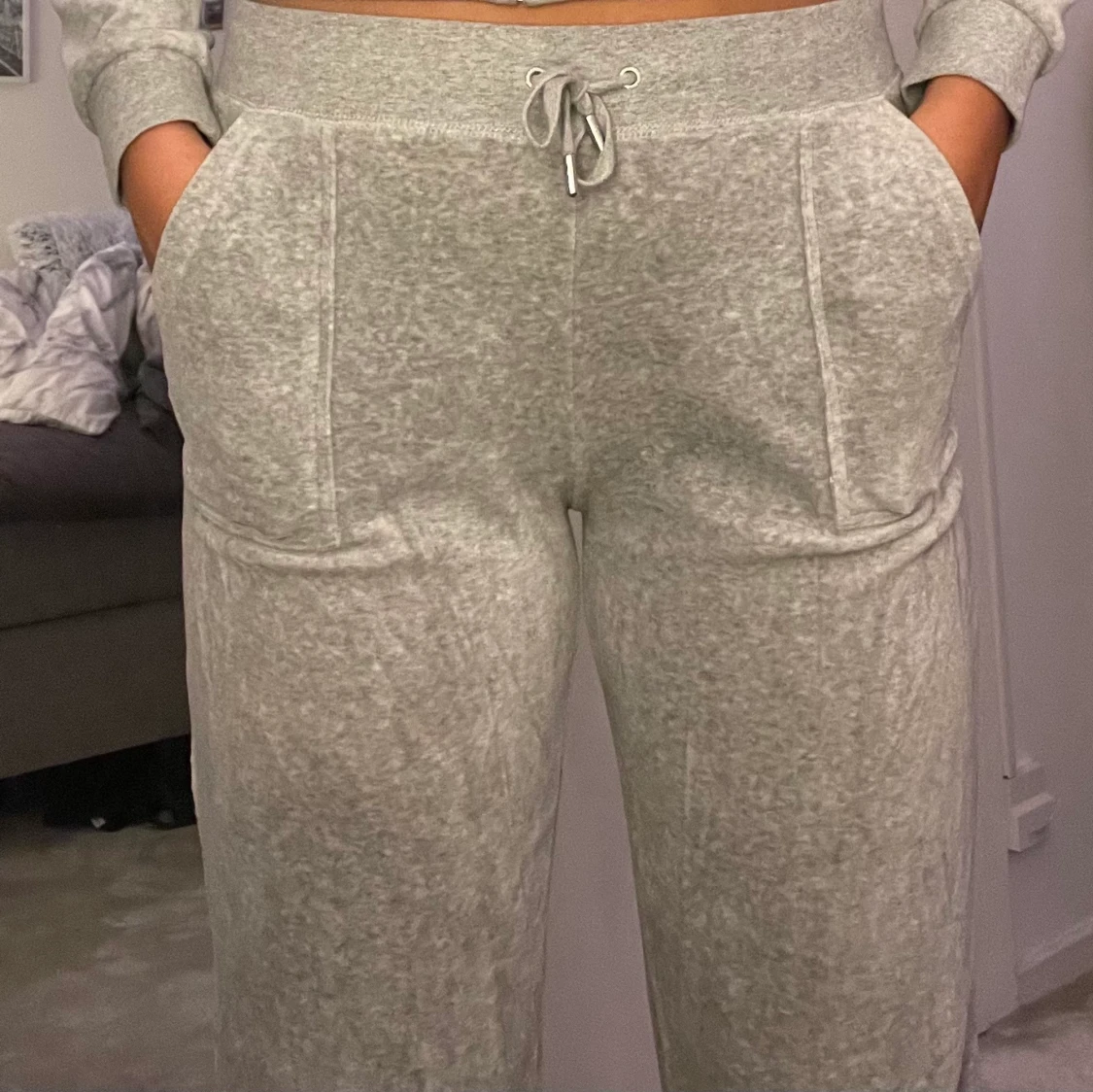 Gråa mjukis byxor från Juicy couture, knappt använda, dem har fickor på rumpan och är köpta för 1100kr, bra kvalite och är i storlek L, säljer dem eftersom jag tycker den är lite för korta. Dom är ca 110 cm i längden och är tro på storlek