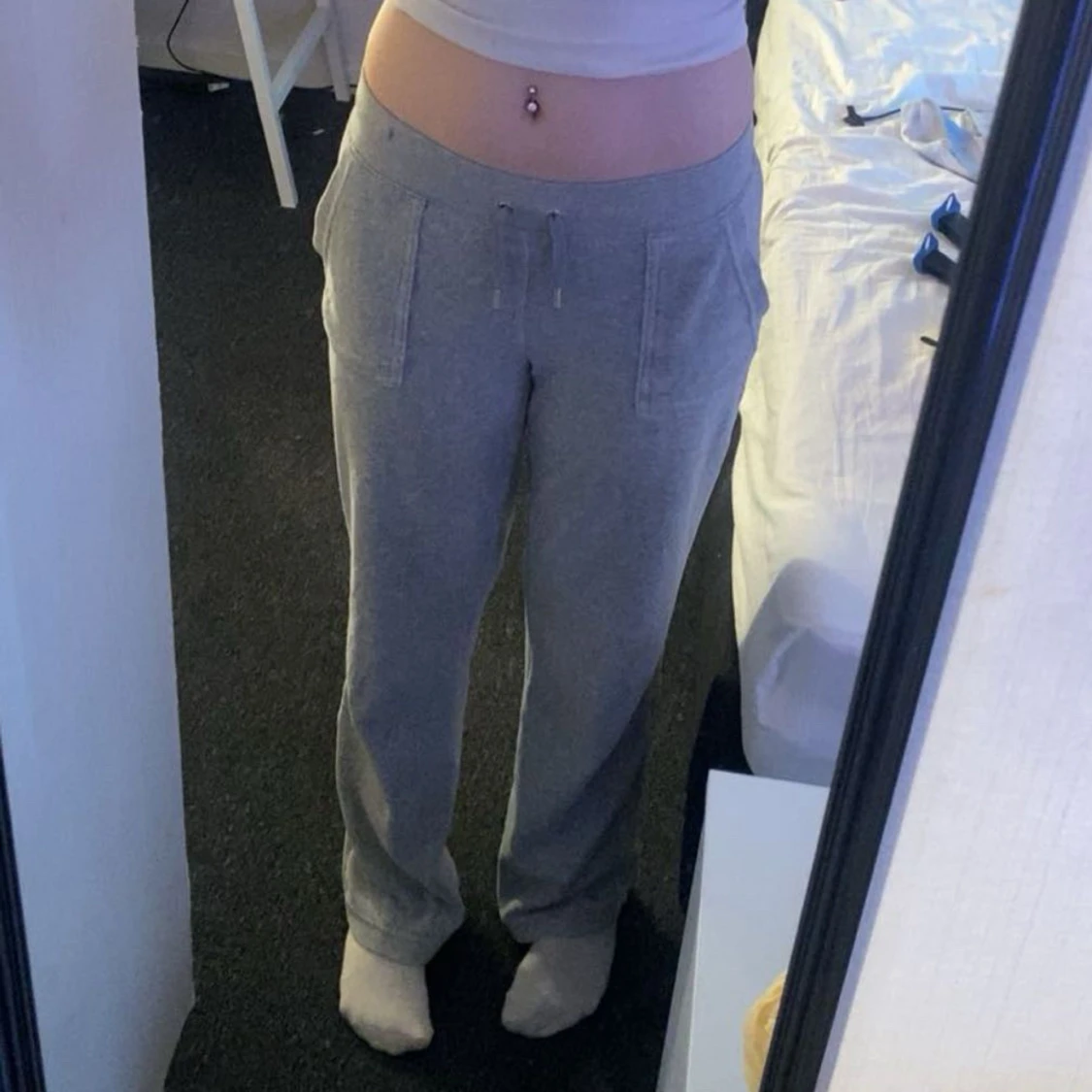 Grå mjukisbyxor från Juicy Couture i storlek S. Byxorna har normal passform, raka ben och snörning i midjan. Mjukt material och fickor både fram och bak. Perfekta för en chill och avslappnad stil. Säljer då dom inte kommer till användning
