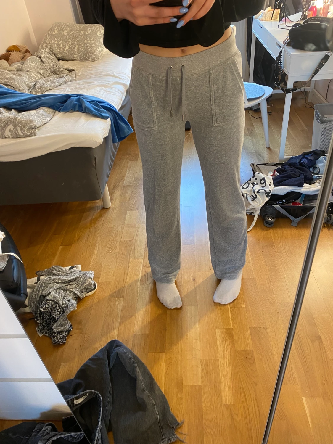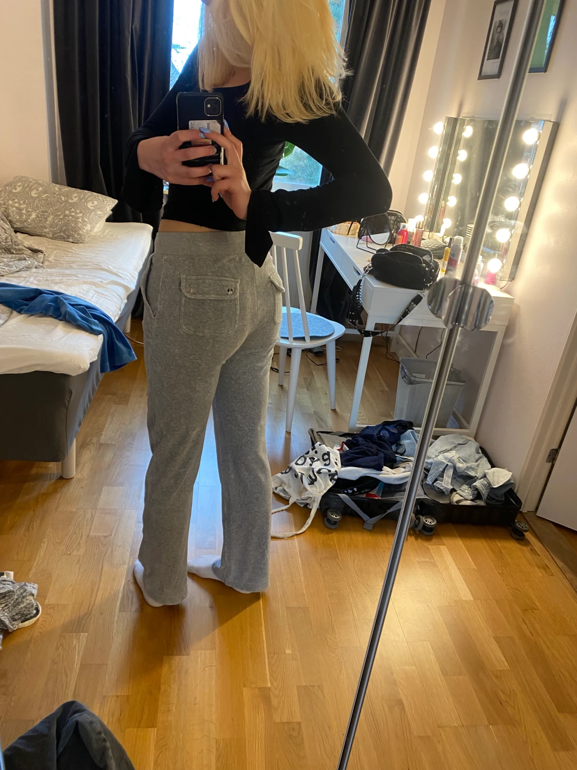 Fina, gråa juicy couture byxor. Köpta på plick typ nya, är nu använda men sparsamt. 🫶🏼pris kan diskuteras vid snabbt köp!
