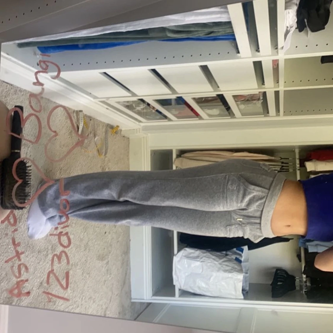 Jättefina gråa juicy byxor, de är endast använda några fåtal gånger och är i bra skick💕helt slutsålda i den storleken överallt, därmed säljer endast vid ett bra bud. KÖP DIREKT FÖR 1000kr