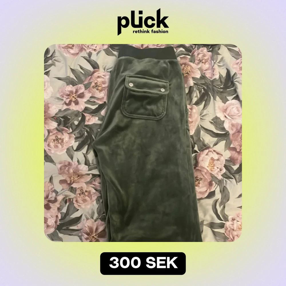 Säljer ett par gröna mjukisbyxor i mycket bra skick. De har en bekväm loose passform och är perfekta för mysiga dagar. Byxorna har praktiska fickor med knappar och en elastisk midja med snörning för bästa komfort.