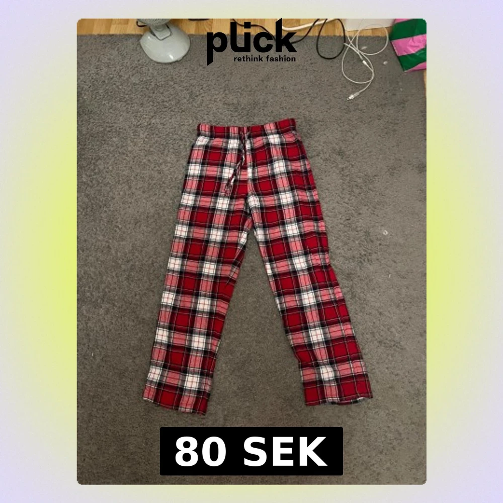 Rödrutiga mjukisbyxor från C i storlek 146/152. Byxorna har ett klassiskt rutmönster i rött, vitt och svart samt snörning i midjan för extra komfort. Perfekta för chill dagar hemma eller som mysplagg.