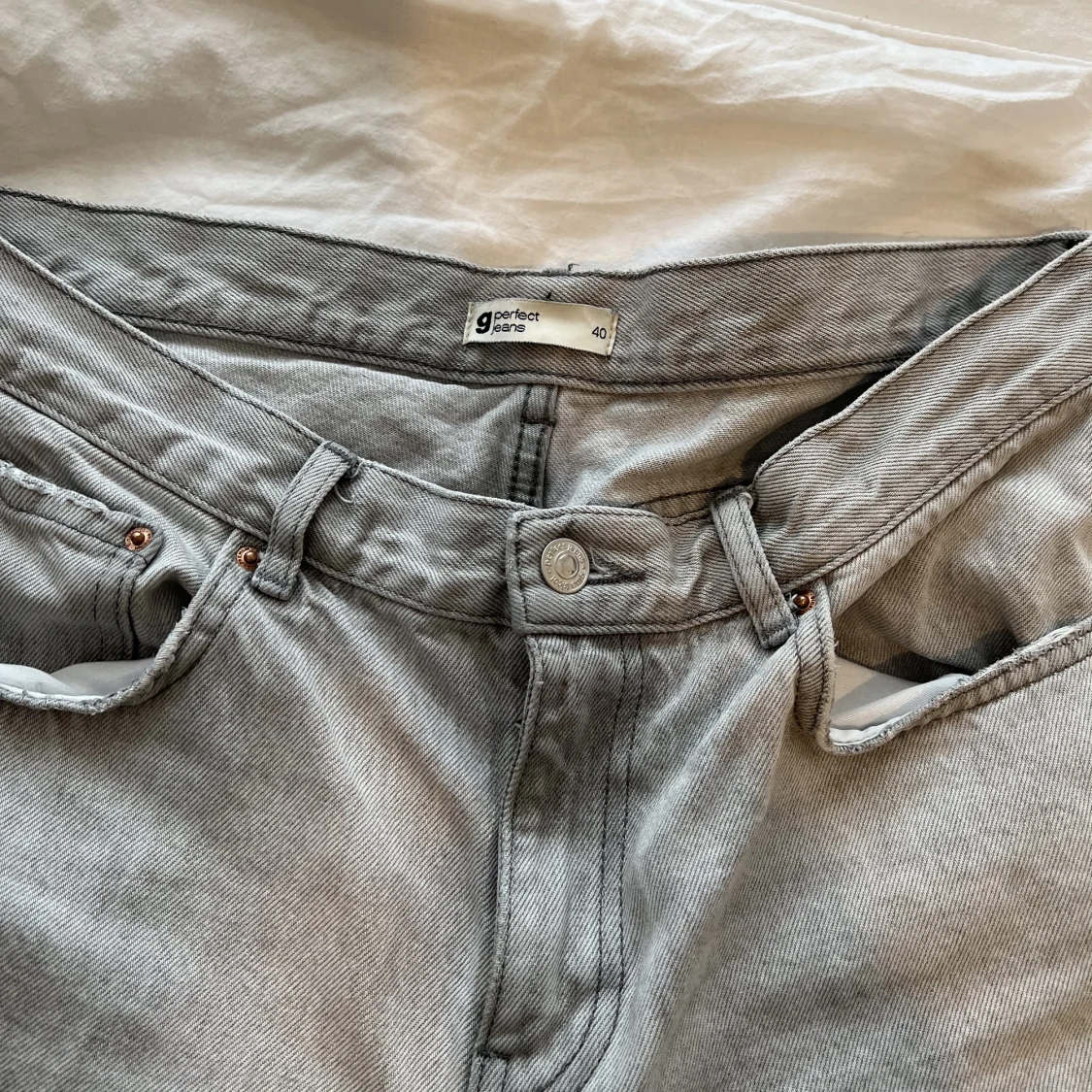 Ett par snygga raka gråa jeans från Gina 💖 storlek 40, säljer då de är lite stora 🤍