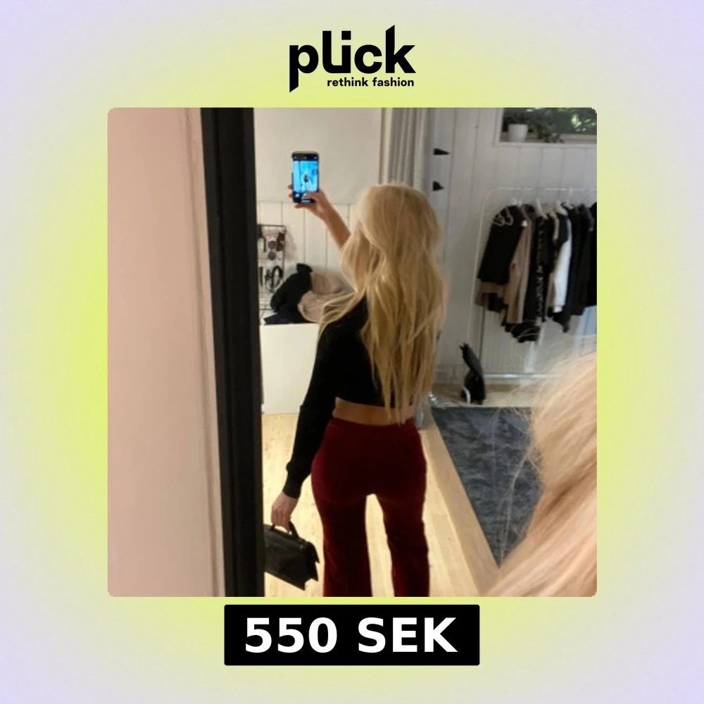 Snygga röda vintage hm byxor med låg midja och vida ben. Perfekta för att ge en färgklick till din outfit. Byxorna har även en snygg söm på benen😊