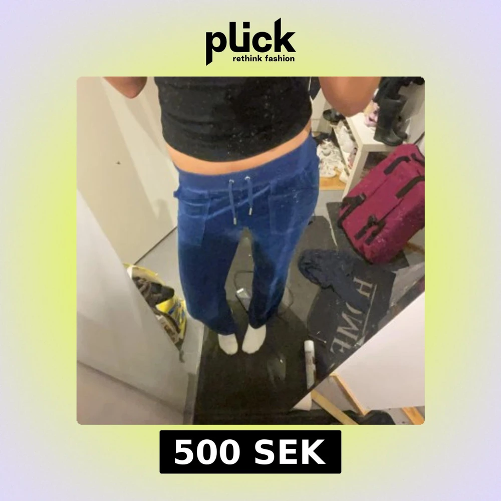 Mysiga blåa Juicy byxor. Byxorna har stora fickor fram och bak, bakfickorna har snygga silverknappar. Perfekta för chill dagar eller när du vill vara extra bekväm. Finns en fläck på vänstra benet längst ner som är nagellim som tyvärr inte går bort. Därav priset. Nypris 1100kr säljer: 500kr pris kan diskuteras💞