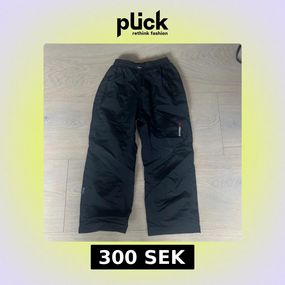 Svarta täckbyxor från Didriksons 1913 med broderad logga på benet. Byxorna har elastisk midja med snörning och praktisk röd hängare på insidan. Tillverkade i slitstark syntet, perfekta för kalla dagar utomhus. Aldrig anväd.