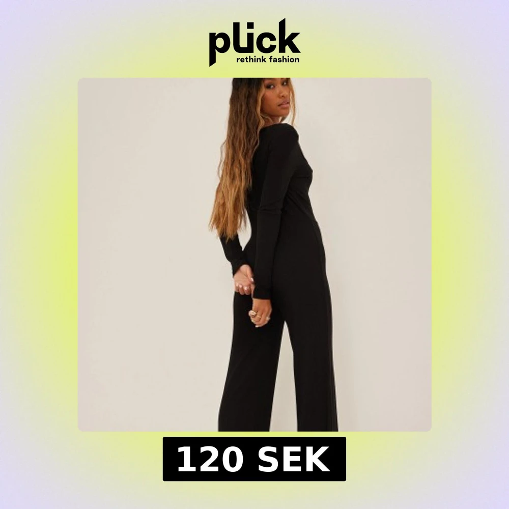 Svart jumpsuit i ribbat material. Figurnära passform upptill med utsvängda ben. Den är i fint skick inga hål eller nopprig. Passar i benlängd 160-165cm