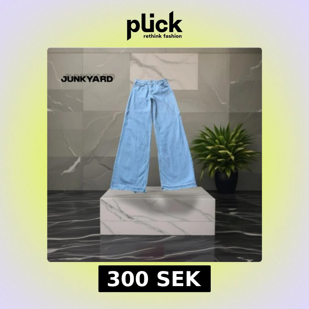Ljusblå wide leg jeans från Junkyard i klassisk denim. Hög midja och riktigt breda ben för en avslappnad vibe. Råa, fransiga benslut ger extra edge. Midja tvärsöver 37 cm, innerbenslängd 85 cm