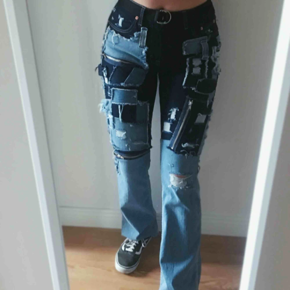 Två byxor ihop sydda till ett par nya coola jeans. Byxorna är ifrån Filippa k och Lee jeans köpte ifrån secondhand⭐️ Köpare står för frakt