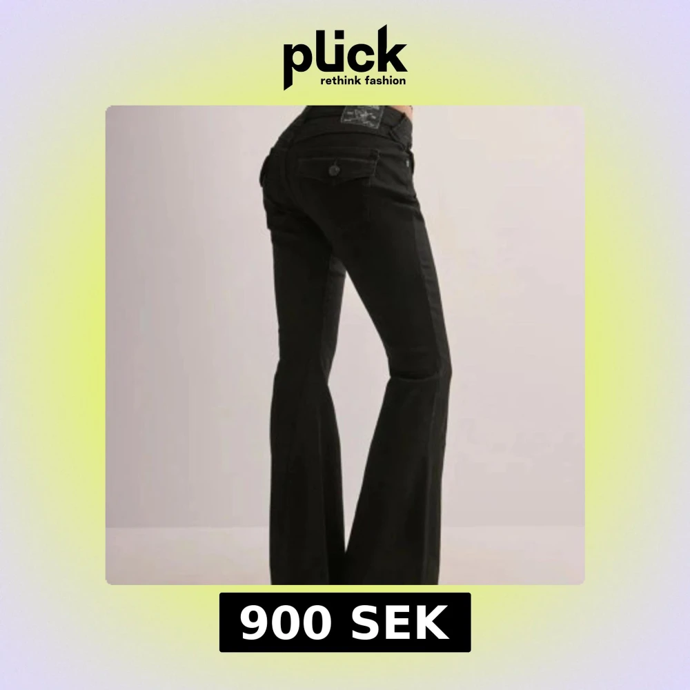 Snygga svarta bootcut jeans från True Religion med klassiska femficksdetaljer och knappstängning. Jeansen har en stilren design med märkets logga på bakfickan och en bekväm passform.