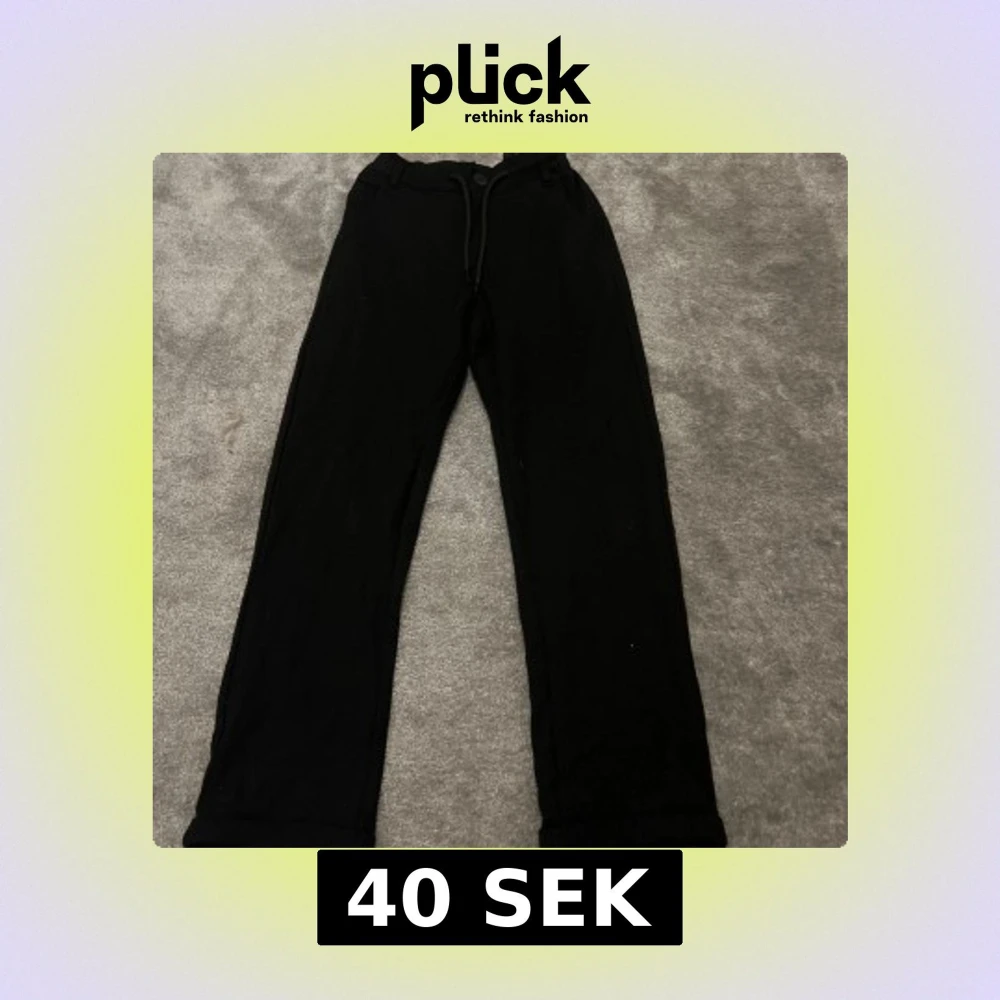 Svarta mjukisbyxor från Kappahl i storlek 134. Byxorna har normal passform, resår i midjan med snörning och knapp framtill. De har raka ben och är tillverkade i mjukt bomullsmaterial, perfekta för chill dagar eller häng med kompisar.