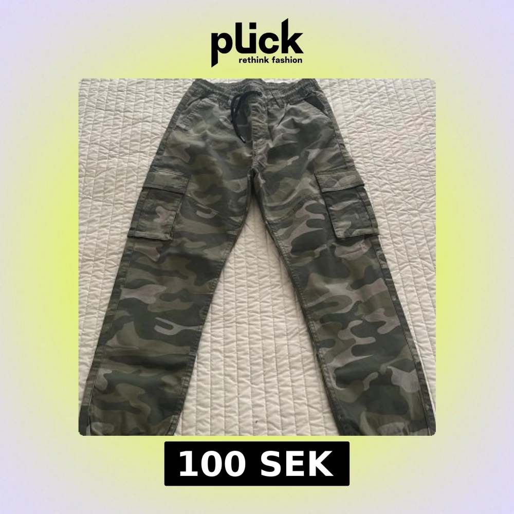 Snygga cargobyxor från KappAhl i klassiskt camouflage-mönster. Byxorna har elastisk midja med snörning och stora fickor på sidorna. Perfekta för en avslappnad streetstil. Tillverkade i mjuk bomull för skön känsla hela dagen.