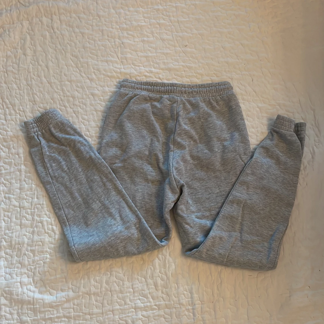 Mysiga grå mjukisbyxor från KappAhl med resår i midjan och benslut. Byxorna har dragsko i midjan och är tillverkade i mjukt bomullsmaterial. Perfekta för chill eller träning. Klassisk rak passform och neutralt utseende.