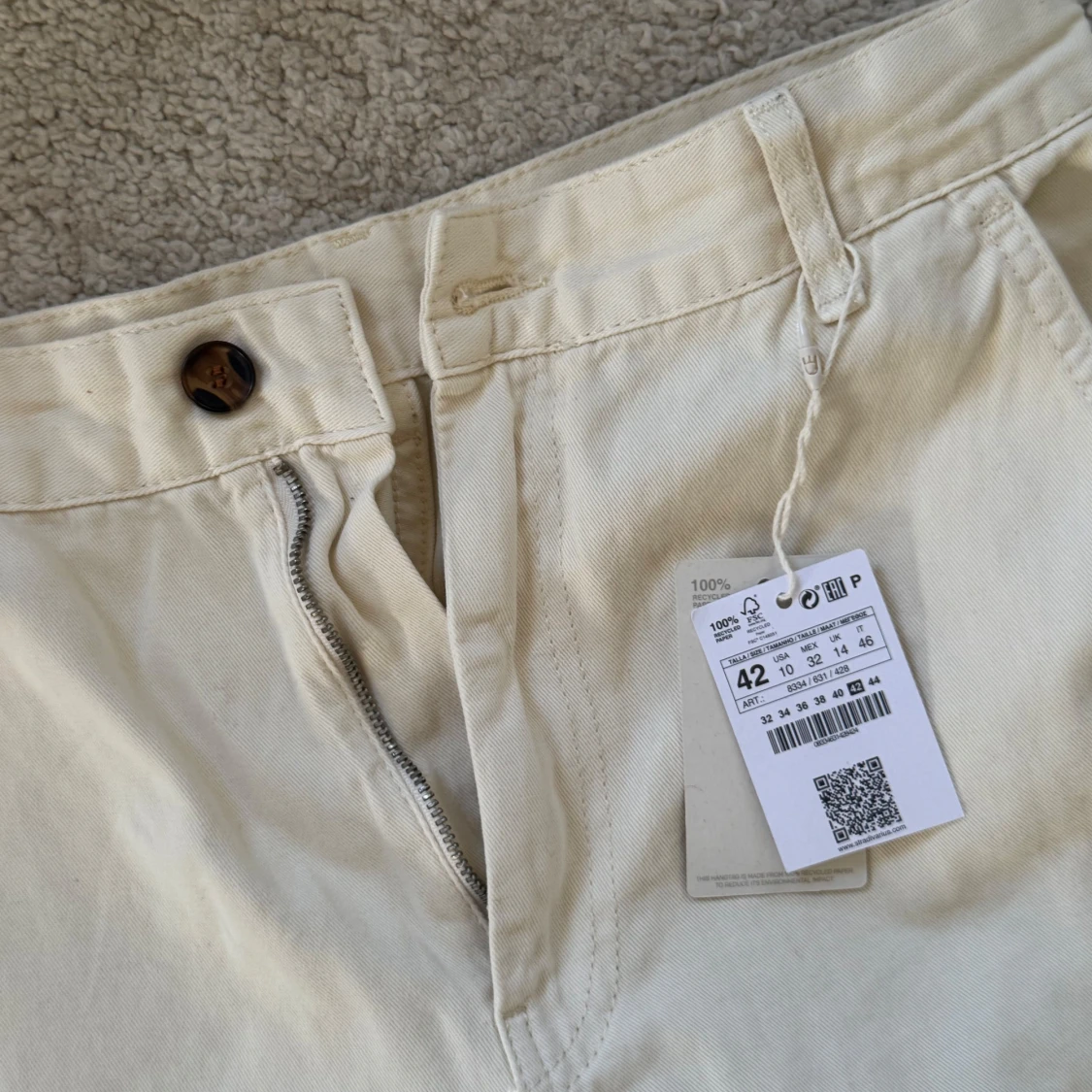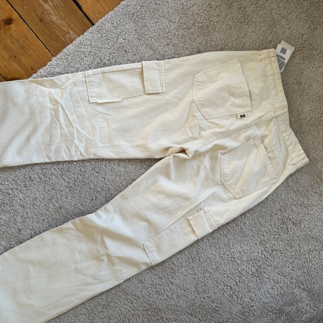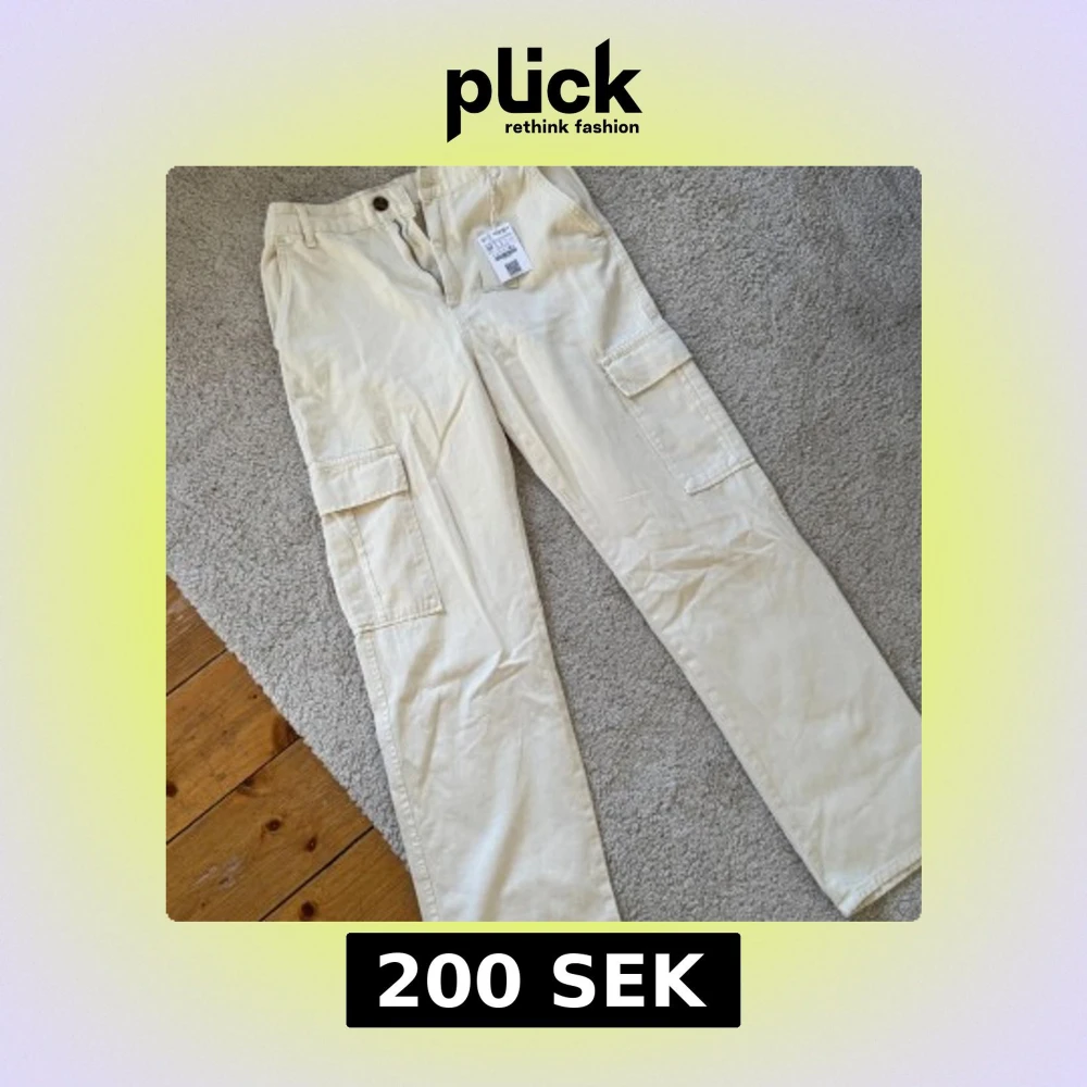 Stilrena beiga cargopants från Kappahl i 100% bomull. Byxorna har raka ben, flera praktiska fickor på sidorna och bak, samt dragkedja och knapp framtill