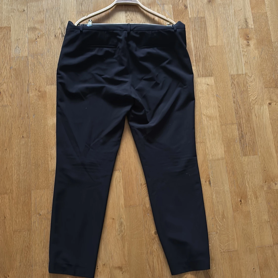 Snygga svarta kostymbyxor med klassisk rak passform och diskreta fickor i sidorna. Byxorna har hällor för bälte och är perfekta för en stilren look. Materialet känns mjukt och följsamt, vilket gör dem bekväma att bära hela dagen.