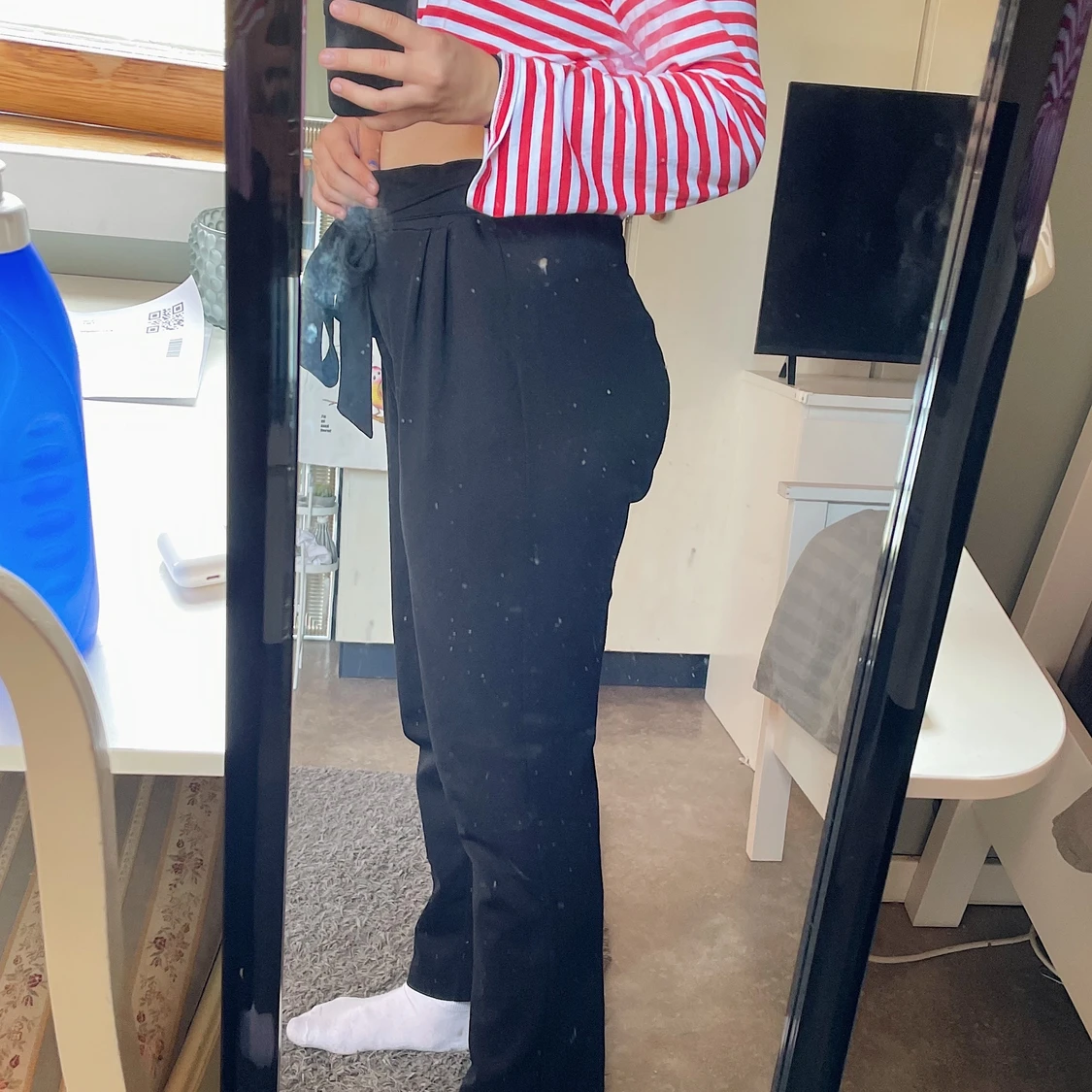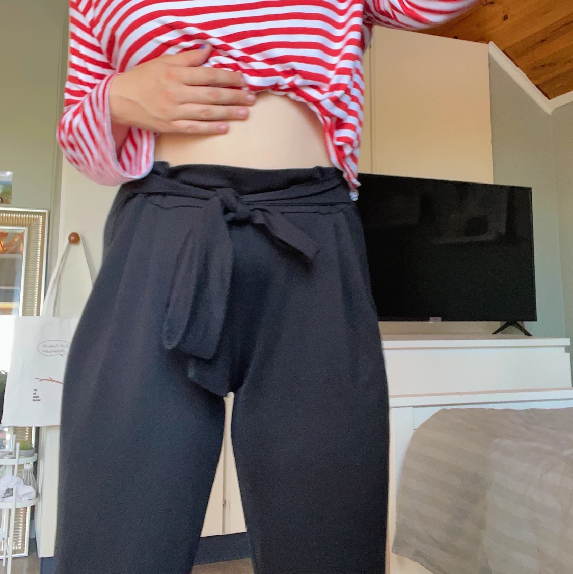 Säljer mina älskade byxor då de inte kommer till användning längre🤎 extremt sköna och sparsamt använda så de har inga defekter! Straight leg och knytning upptill vilket gör att byxorna passar många olika storlekar! Beroende hur man vill att de ska sitta skulle jag säga att de passar M och uppåt.