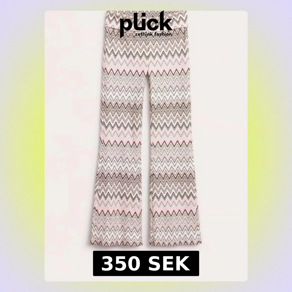 Säljer ett par riktigt snygga wide byxor med zigzag-mönster i brunt, rosa och vitt. Byxorna har hög midja och är tillverkade i ett mjukt stickat material som känns skönt mot huden. Perfekt för dig som gillar att sticka ut med coola mönster och färger. Använd en gång