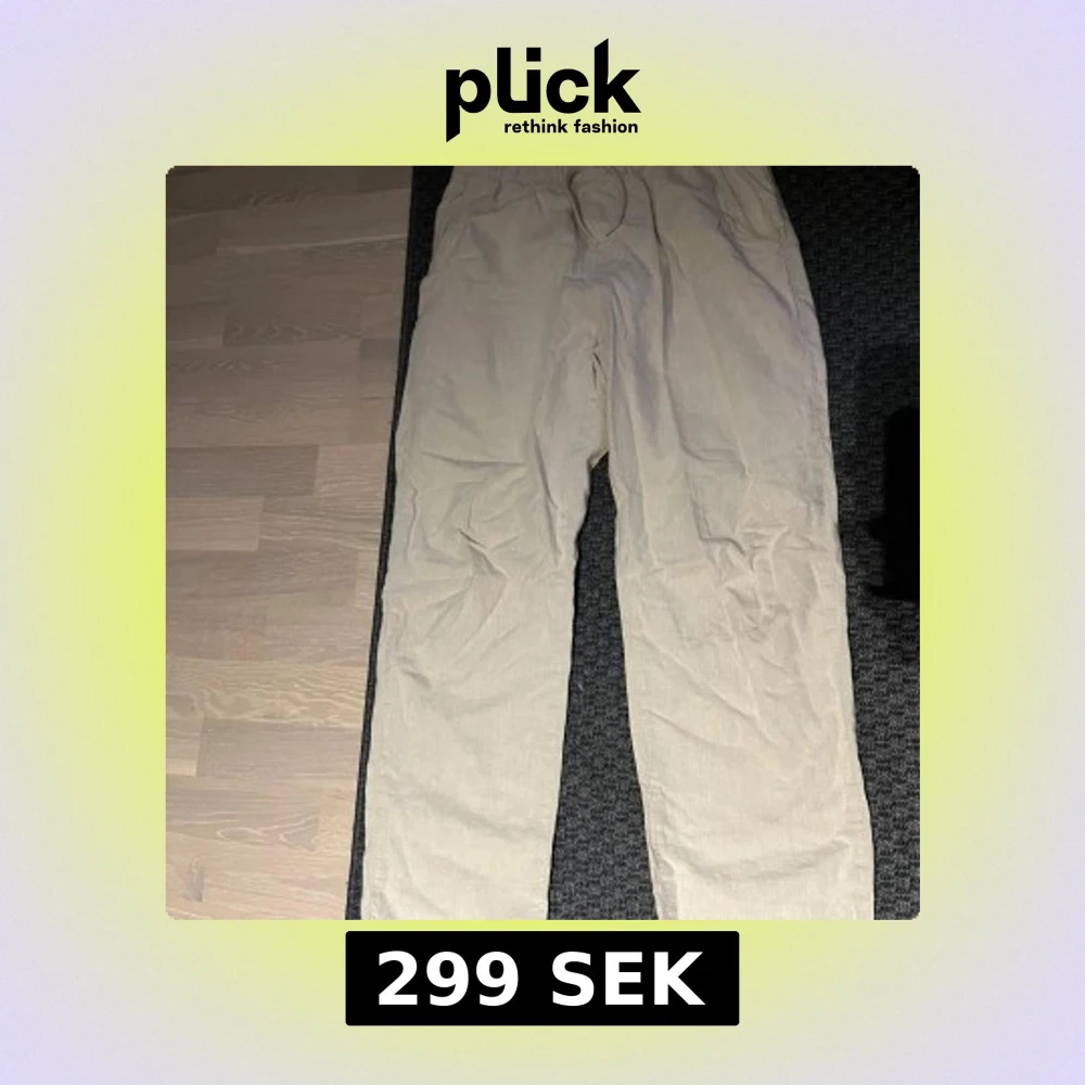 Säljer ett par beiga linnebyxor från Kappahl med avslappnad passform och resår i midjan. Perfekta för varmare dagar och riktigt sköna att ha på sig. Byxorna har en enkel och stilren look som funkar till många olika outfits. Storlek 164 men sitter som vanlig small. Tveka inte att skriva om du har några funderingar och priset är absolut inte fast!