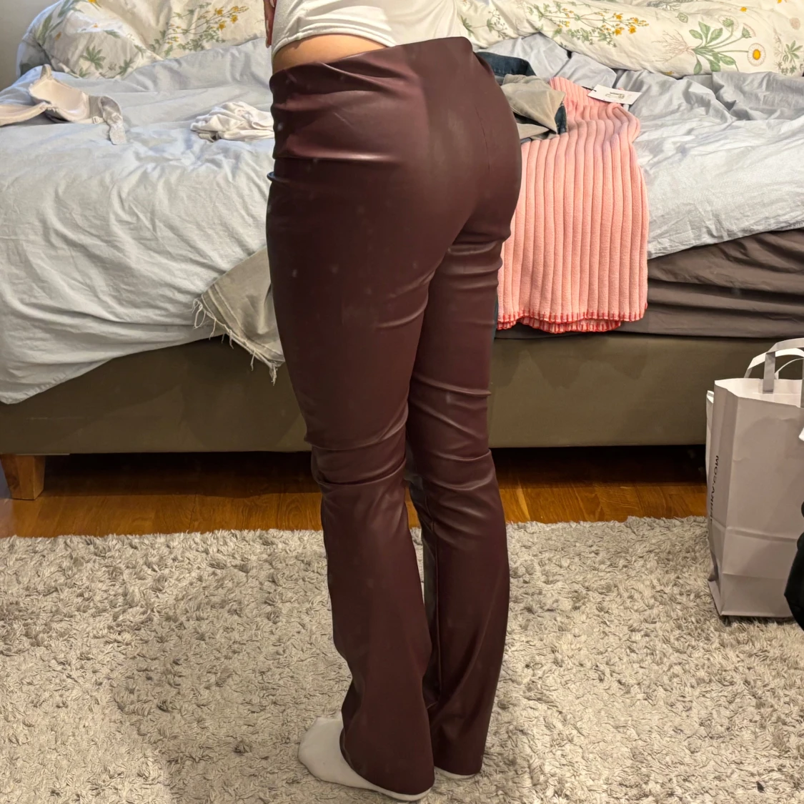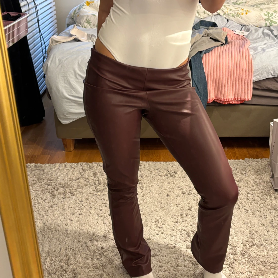 Snygga vinröda skinnbyxor från Kappahl. Passar parfekt på mig som är 164 cm.