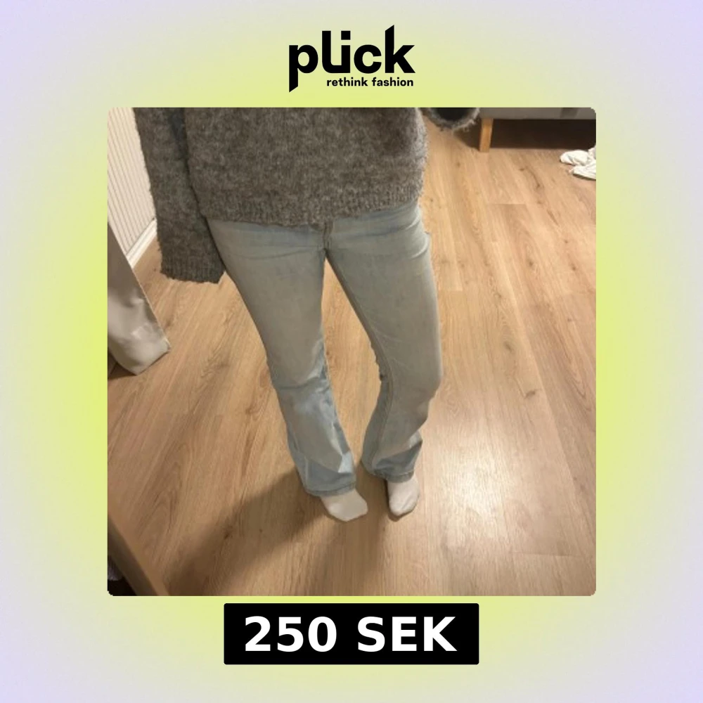 Säljer ett par ljusblå midwaist jeans. Det är små repor som man kan se på de sista bilderna. Inget man ser tydligt när man bär dem men därav kan priset diskuteras.