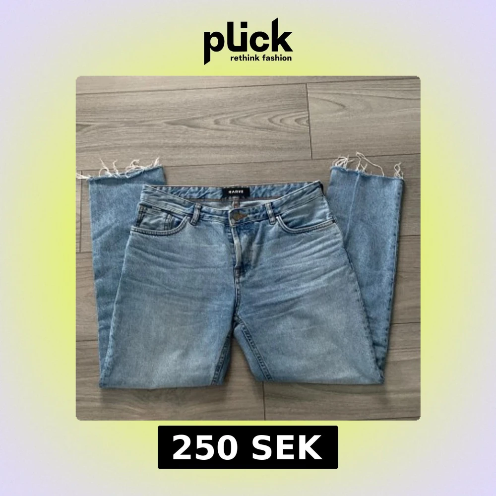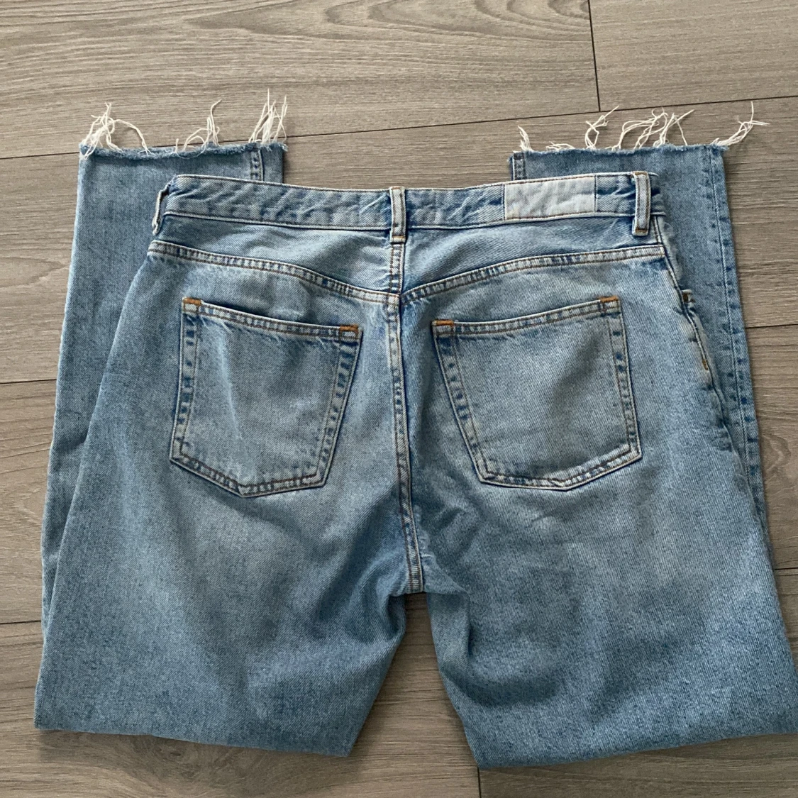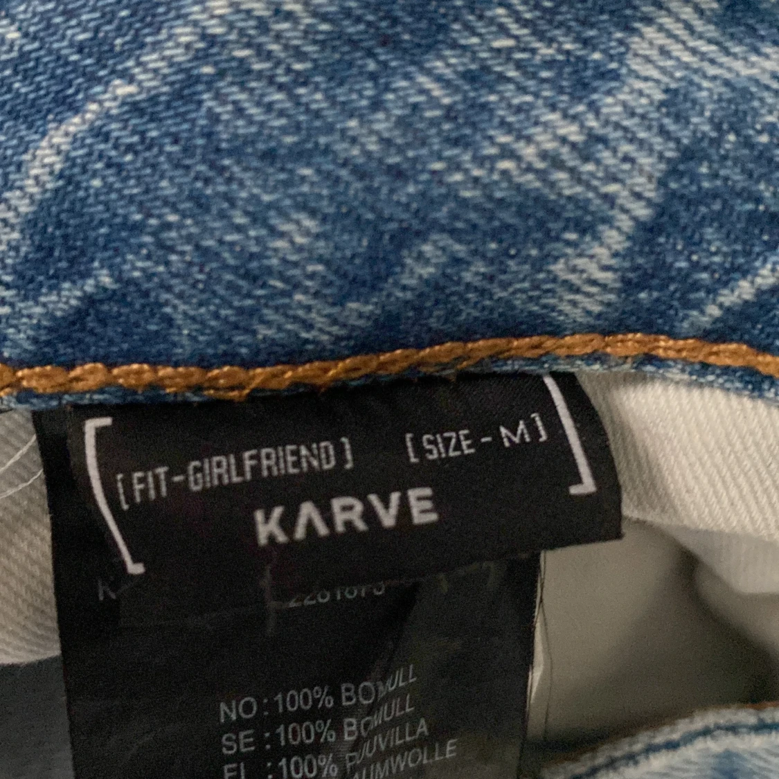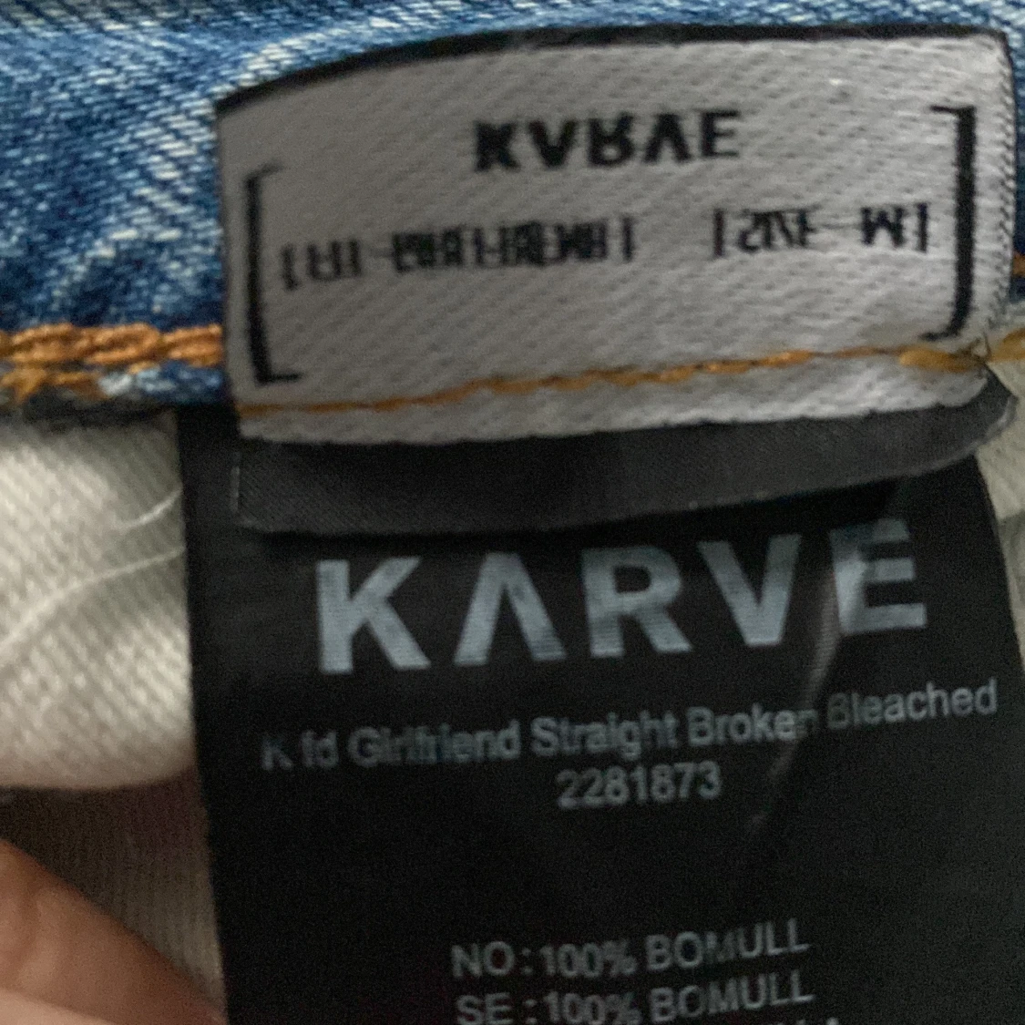 Ljusblå jeans från Karve i girlfriend fit med raka ben och fransiga benslut.