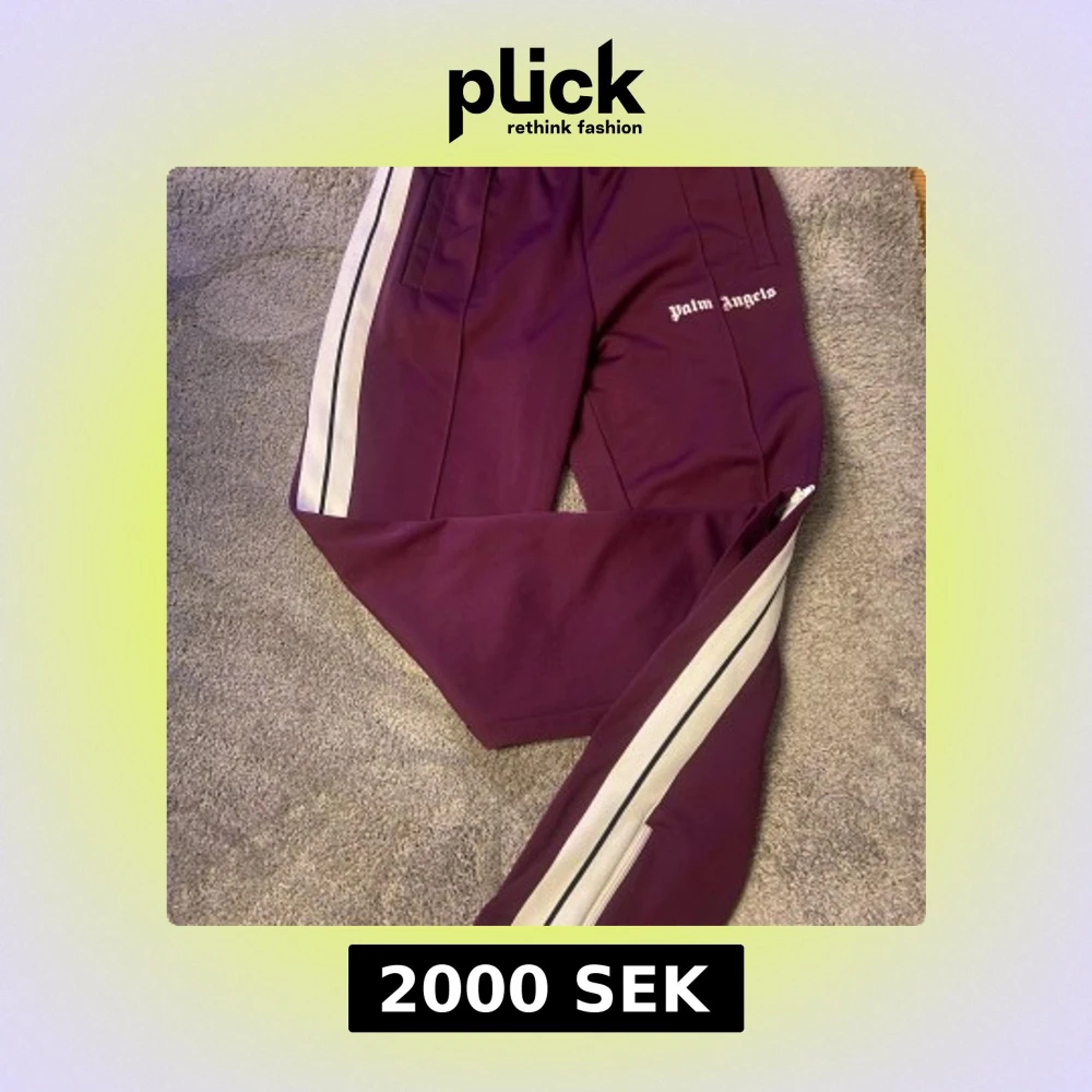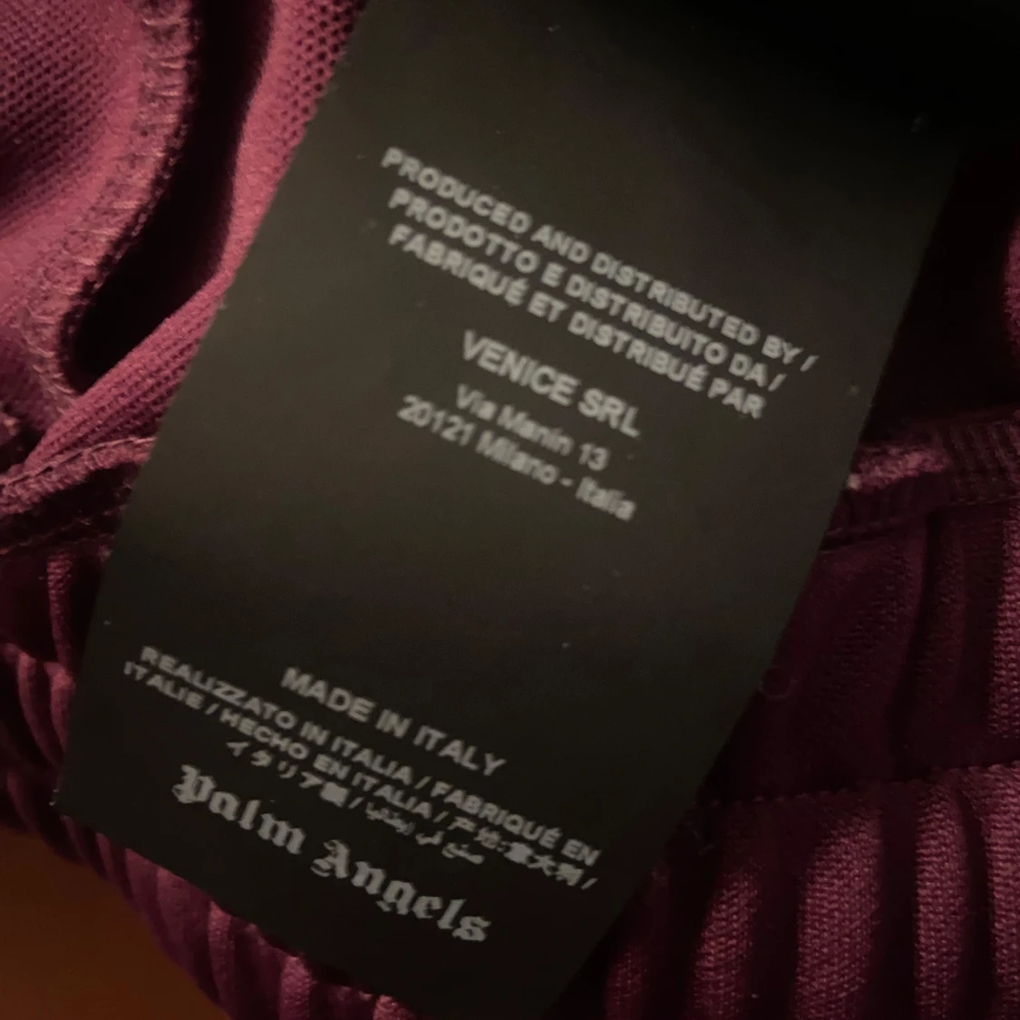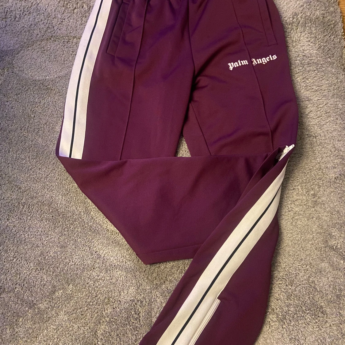Lila/plommon palm Angels byxor med vita ränder längs sidorna. Storlek L ”herr”. Väldigt bra skick.