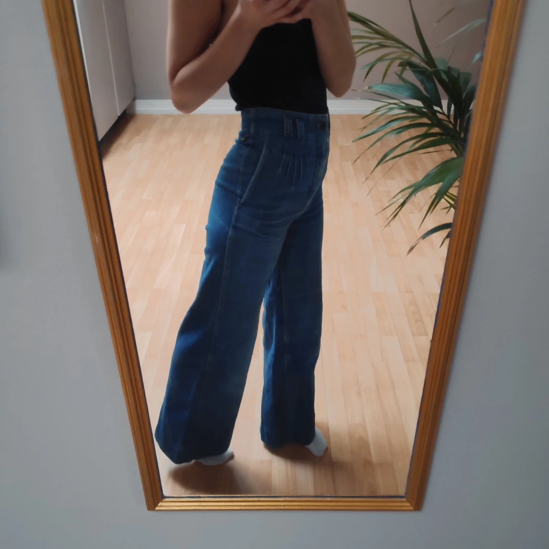 Underbara jeans med snygga detaljer och hög midja. Säljer dessa älsklingar då de tyvärr sitter lite väl tight på mig. Strl XS/34. Köpta på en liten lokal secondhandbutik för ca ett halvår sedan. Äkta vintage, bra kvalitet! Frakt tillkommer.