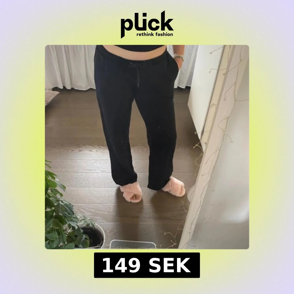 Säljer ett par svarta mjukisbyxor med knytning i midjan. Perfekta för en avslappnad dag hemma. Byxorna har en loose passform och är tillverkade i ett mjukt material för extra komfort. De är endast använda 1 gång. Passar en storlek M