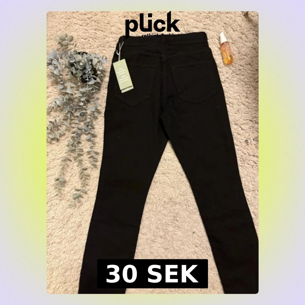 Säljer ett par svarta curvy jeggings från &Denim i storlek 36. Tillverkade av 20% återvunnen bomull och 20% återvunnen polyester.