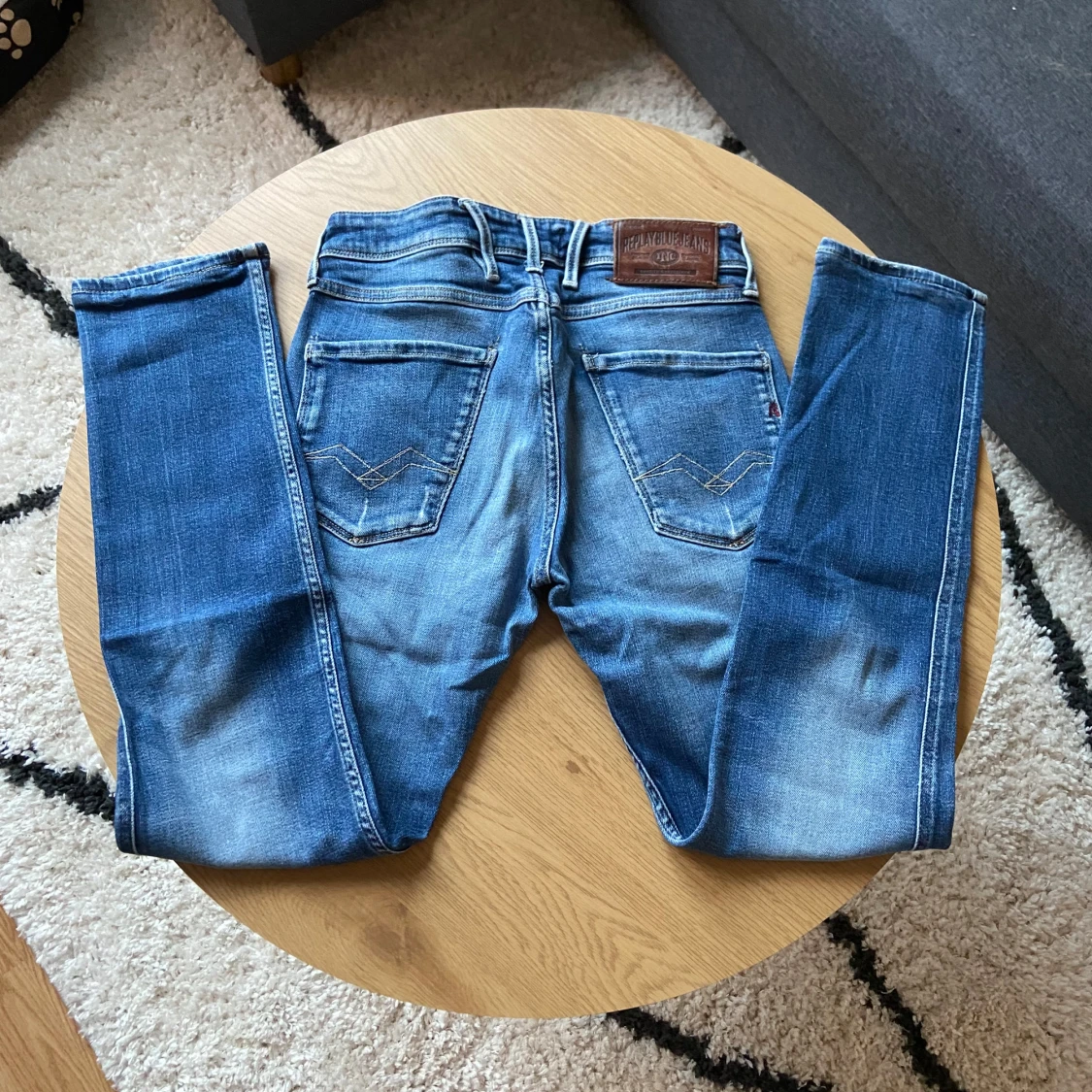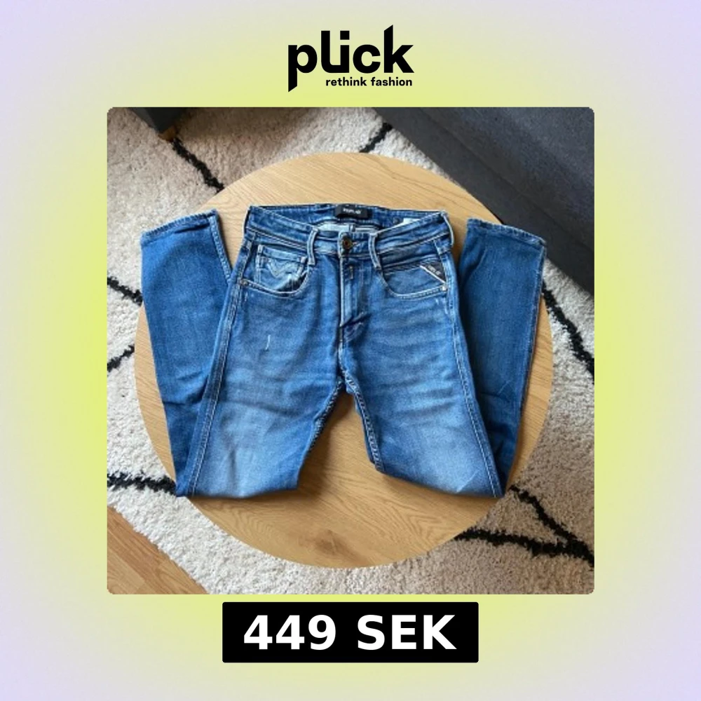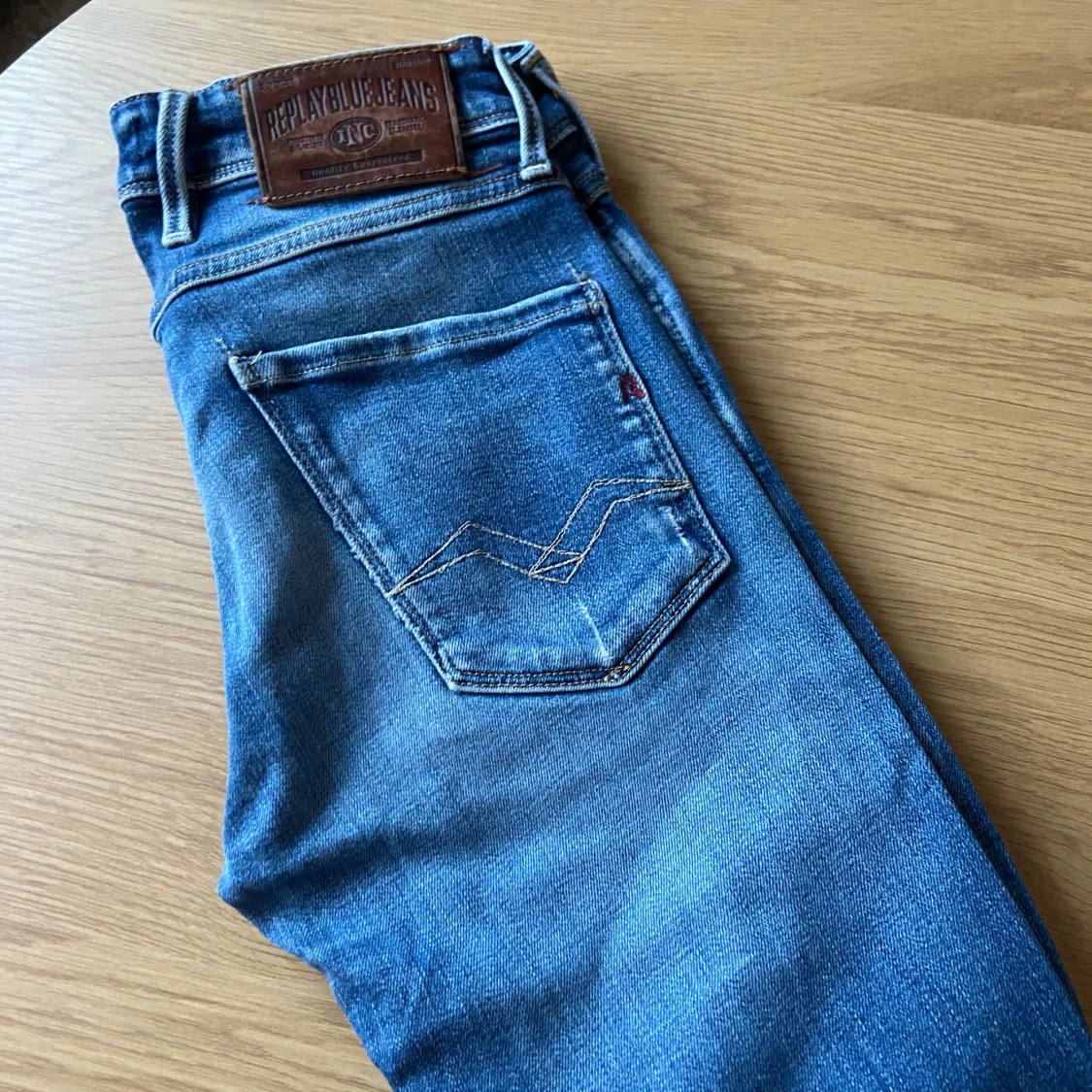 Tjena👋 Säljer ett par klassiska blå jeans från Replay i Anbass modell med snygga slitningar och raka ben👖 Jeansen har fem fickor, dragkedja och knapp i midjan samt Replay-läderpatch bak. Perfekta för dig som gillar en tidlös jeanslook⏳ Väldigt najs material utan några defekter!🙌 Storleken är W28 L32📏 Men sitter som L30📐 Priset kan diskuteras vid snabb affär!💸 Vid minsta frågor: Meddela!📩