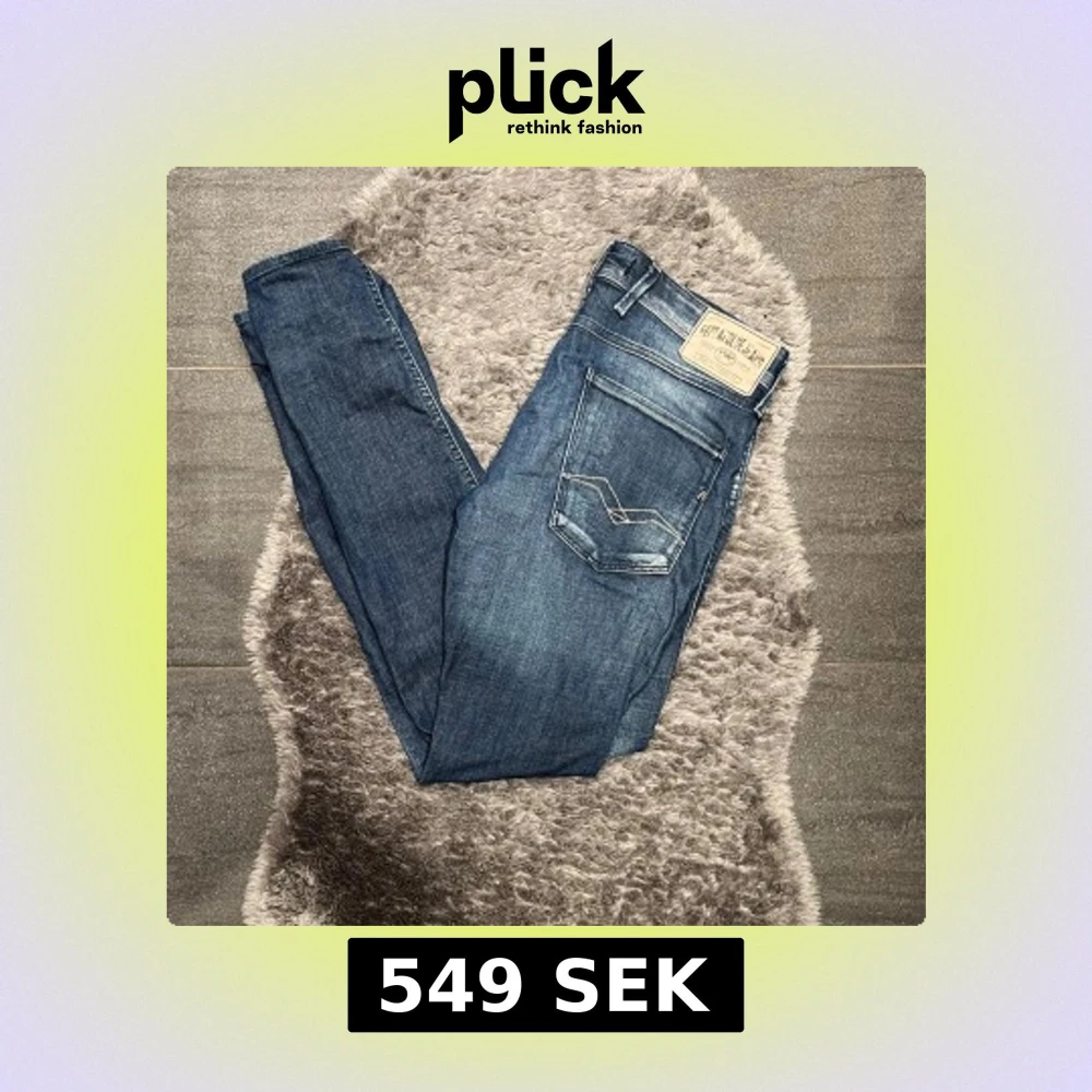 Mörkblåa Replay Anbass jeans i snygg passform och stilren tvätt. Storlek W32 L32. Mycket fint skick.